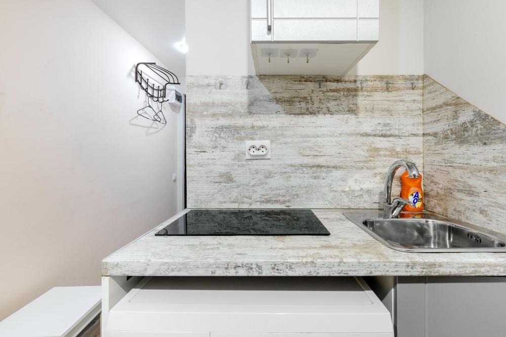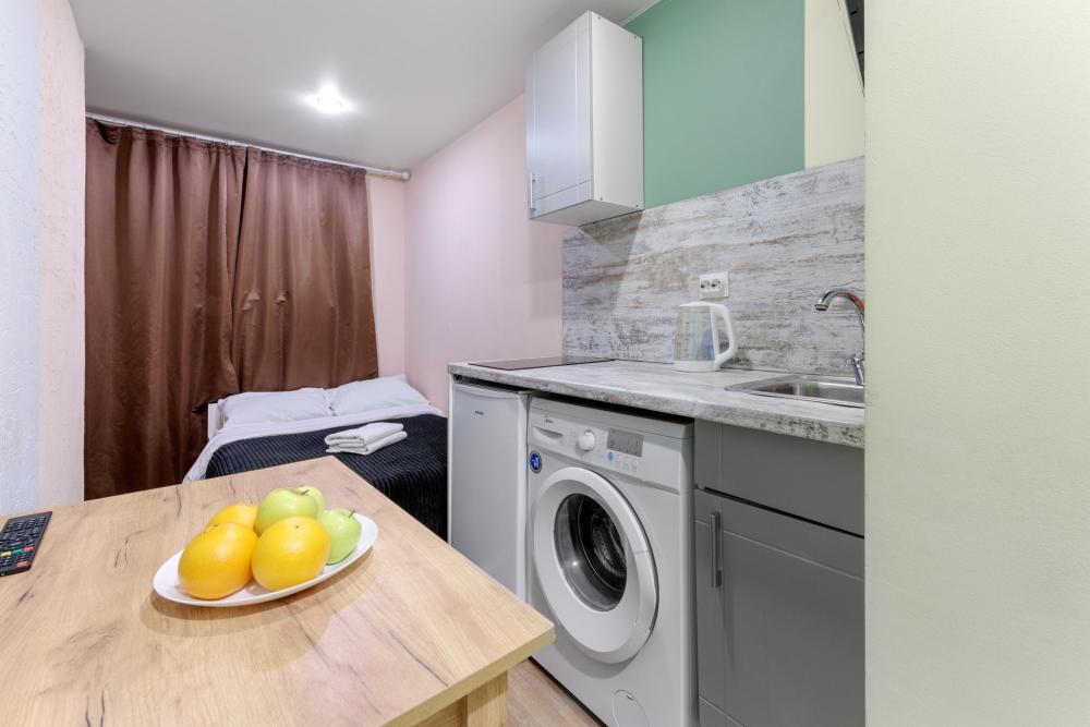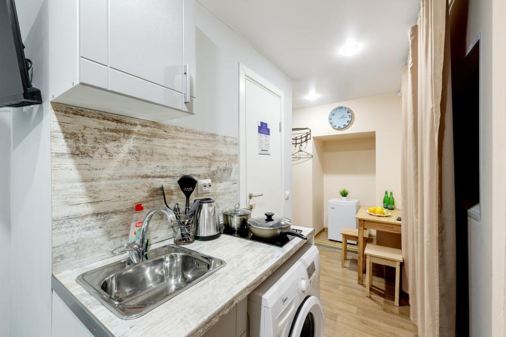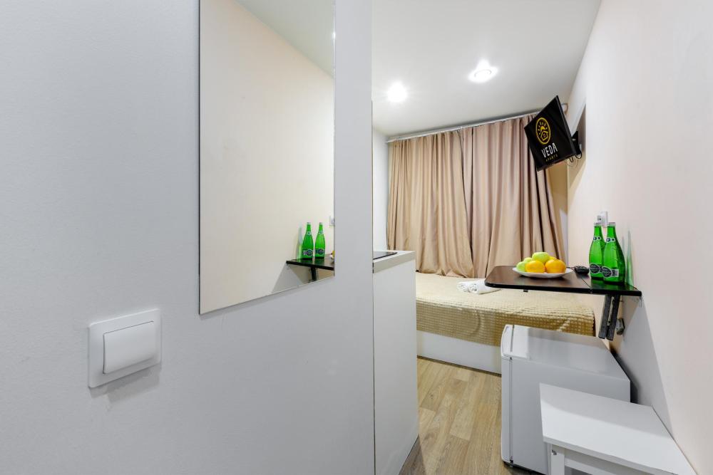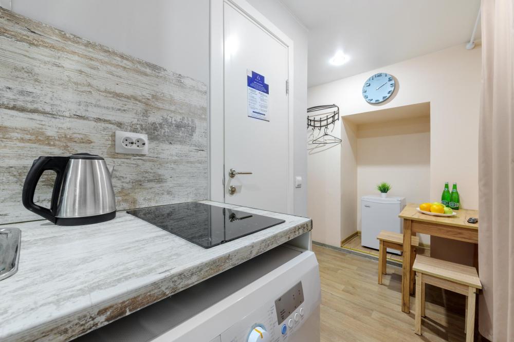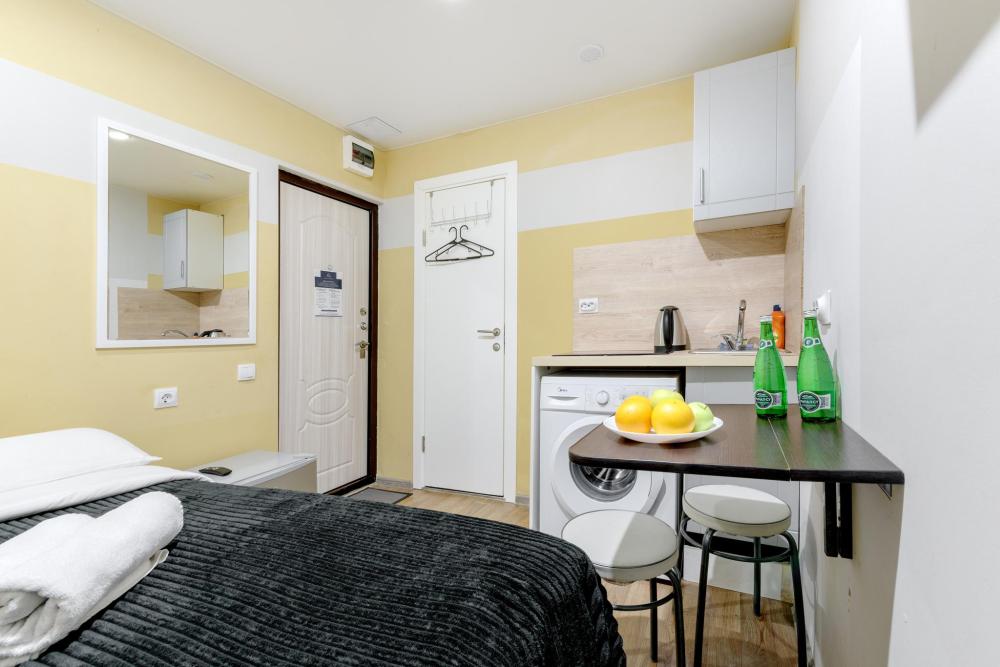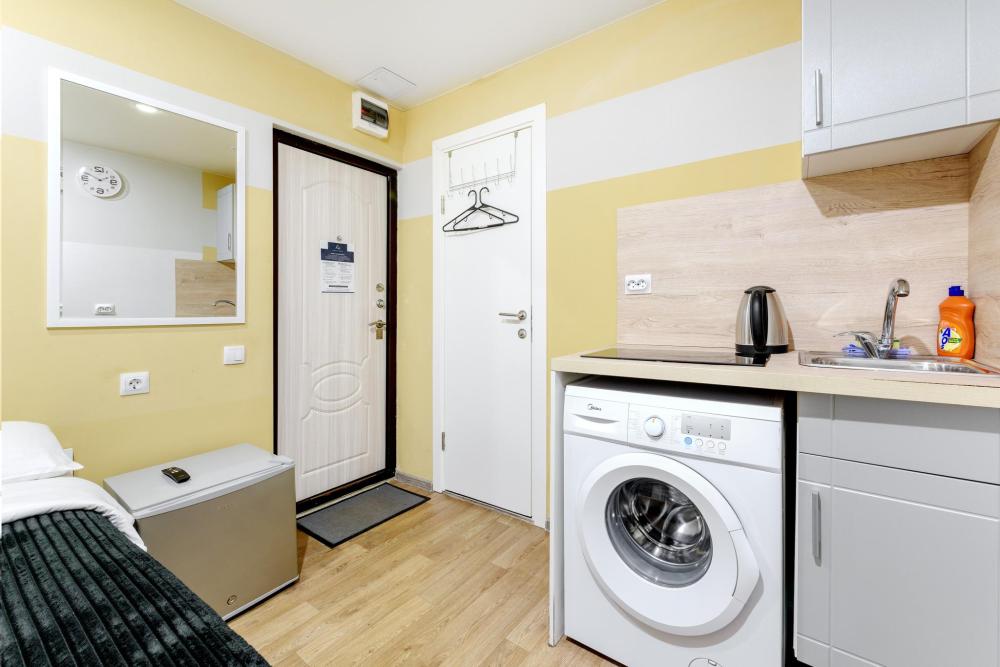 Рады приветствовать Вас в Апартаментах «VEDA Aparts» – уют и комфорт в самом сердце Северной столицы! Найти нас легко: улица Рузовская, 33. В шаговой доступности расположены станция метро «Технологический институт», «Пушкинская», «Звенигородская» Наши апартаменты – идеальный выбор. Для отдыха, и в то же время для проведения насыщенного досуга в центре города. Мы позаботились о Вашем удобстве, предоставляя все необходимое для комфортного проживания. Бесплатный Wi-Fi, современный ЖК-телевизор с широким выбором кабельных каналов, а также стиральная машина в индивидуальном пользовании. Каждая студия оборудована собственной ванной комнатой и мини-кухней, где Вы найдете все необходимое для кулинарных экспериментов. К Вашим услугам также гладильные принадлежности и микроволновая печь, находящиеся в общем доступе. Обращаем Ваше внимание: в данной студии нет окна. Наши правила заботы: • Мы обеспечиваем безопасность системой видеонаблюдения в общих зонах. • Поддержание идеальной чистоты благодаря тщательной уборке. • Для обеспечения Вашего комфорта и безопасности у нас действуют простые правила: курение и размещение с питомцами не допускаются. Количество проживающих гостей должно соответствовать указанному при бронировании. Заезд осуществляется с 14:00, выезд – до 11:00 (возможность раннего заезда или позднего выезда оговаривается индивидуально и оплачивается отдельно). Для заселения необходимо предоставить паспортные данные и адрес регистрации (фото) в соответствии с постановлением правительства РФ № 341 от 20.03.2024. Заселение без документов, удостоверяющих личность, к сожалению, невозможно. Обязательна оплата проживания и страхового депозита в размере 2000 руб., который вносится онлайн переводом (за сохранность имущества, ключей и соблюдение правил проживания). После проверки состояния апартаментов, залог будет возвращен на Вашу карту после 23:00 в день выезда или на следующий рабочий день. В случае нарушения правил проживания, мы вправе удержать залог. Мы предлагаем бесконтактное заселение. После оформления бронирования свяжитесь с нашим администратором по телефону, указанному в ваучере, для получения инструкций. После внесения всех платежей Вам будет предоставлена информация о доступе в апартаменты. Можем предоставить отчетные документы по требованию. Забронируйте сейчас и подарите себе незабываемый отдых в Санкт-Петербурге! Мы гарантируем оптимальное соотношение цены и качества. Наша команда всегда на связи с 10:00 до 22:00 и готова ответить на любые Ваши вопросы. Ваш комфорт – наш приоритет! Будем рады видеть Вас!