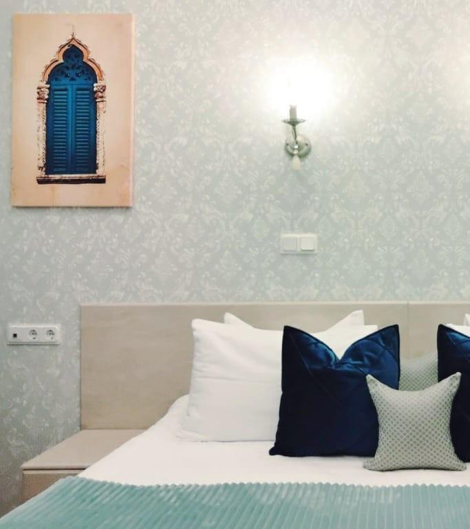 #103 "Colorito Green" - так называется эта комната. В Венеции, колорито, «окраска» — это не только цвет, но и его разумное применение — считалась основополагающей для понимания окрашенных образов, заряженных взглядом жизни с тонким богатством Венецианского колорита. Комната с высокими потолками стилизована под атмосферу венецианской романтики. В комнате одна очень большая двуспальная кровать размера king-size. Из окон открывается вид на классический питерский дворик. На окнах москитные сетки и устройство для микровентиляции. Собственная комфортная ванная комната с душем. Предоставляются полотенца, тапочки, фен, гель для душа, шампунь, кондиционер, антибактериальное средство для рук, халаты (по запросу). В комнате есть холодильник, телевизор, много розеток, сушилка для обуви, сушилка на батарею. Мобильный складной столик для ноутбука (по запросу). В общей зоне: стиральная машина, микроволновая печь, кофеварка, чайник, чай, кофе, питьевая вода, гладильная доска, утюг. Бесплатный Wi-Fi.