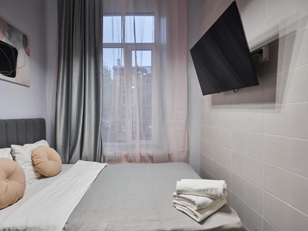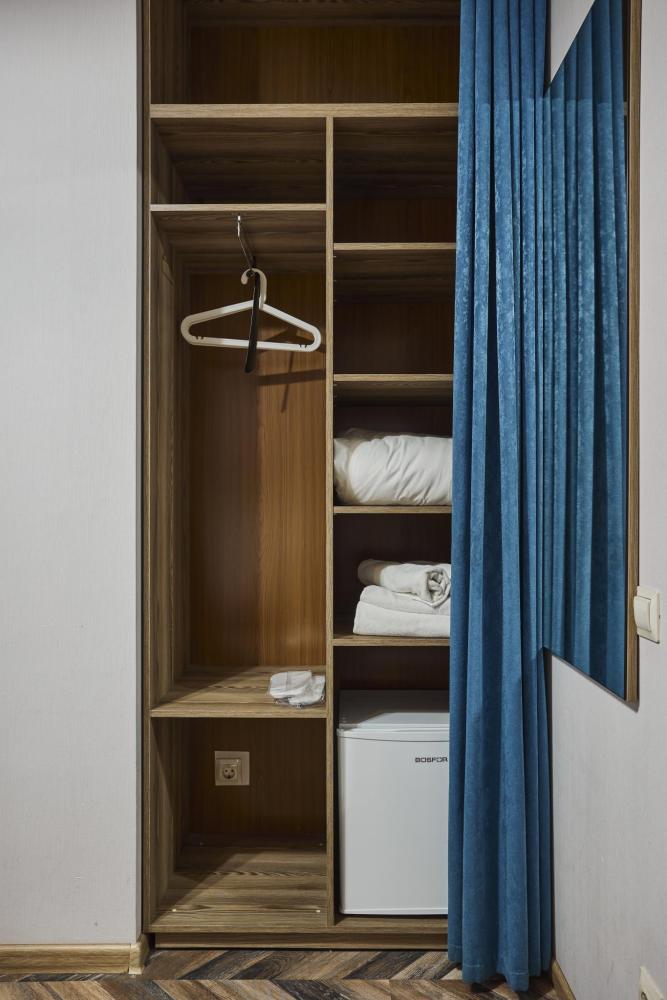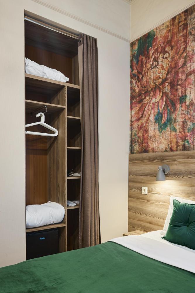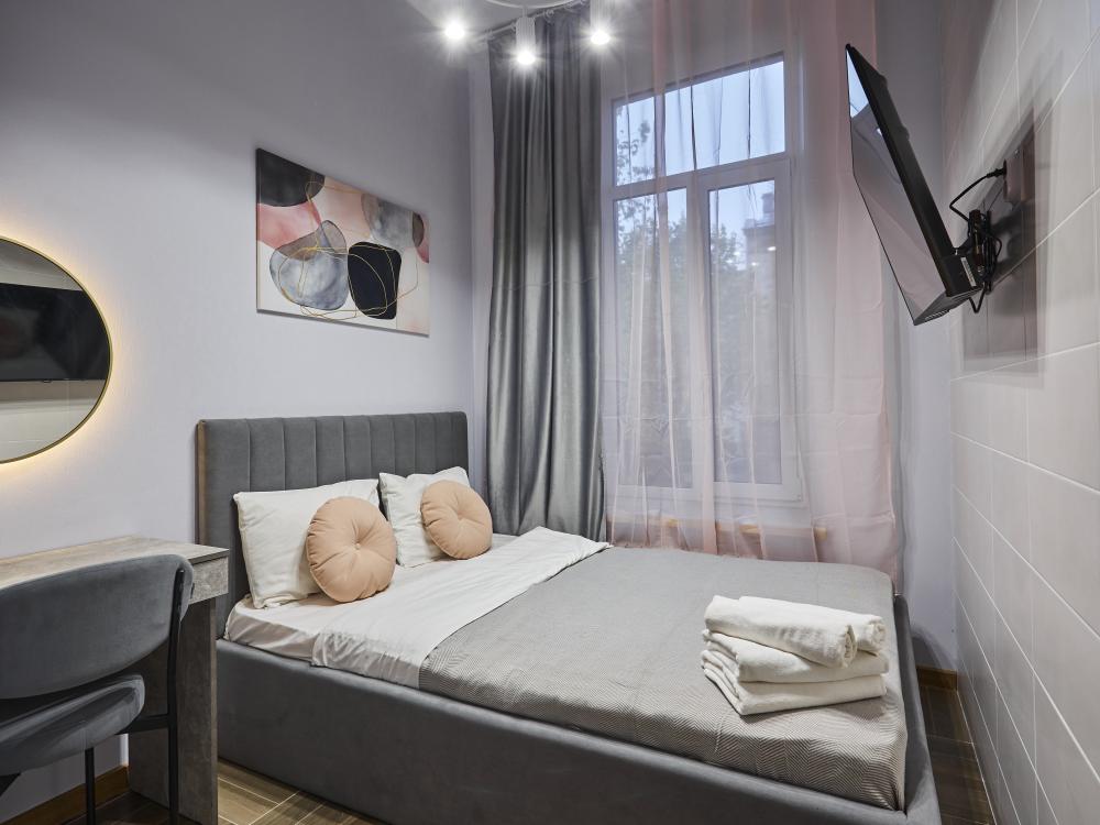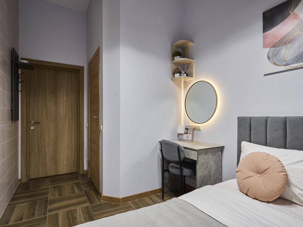 Улучшенный одноместный Площадь 12 кв.м. Наполняемость : Кровать размер 80*190, Прикроватные тумбочки 1шт, Рабочий стол, Шкаф/гардероб, Телевизор с плоским экраном Отдельный санузел с душевой кабиной Комплект полотенец, белье, фен и тапочки предоставляются бесплатно Шампунь, Гель для душа, Мыло, Шапочка для душа предоставляются бесплатно Гладильные принадлежности (гладильная доска и утюг) предоставляются бесплатно по запросу