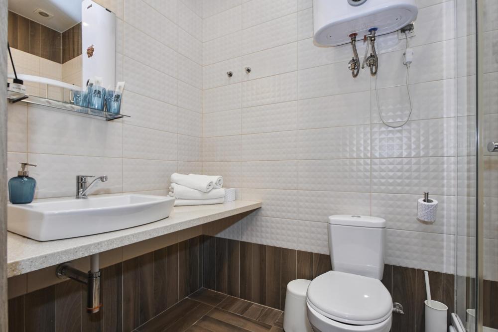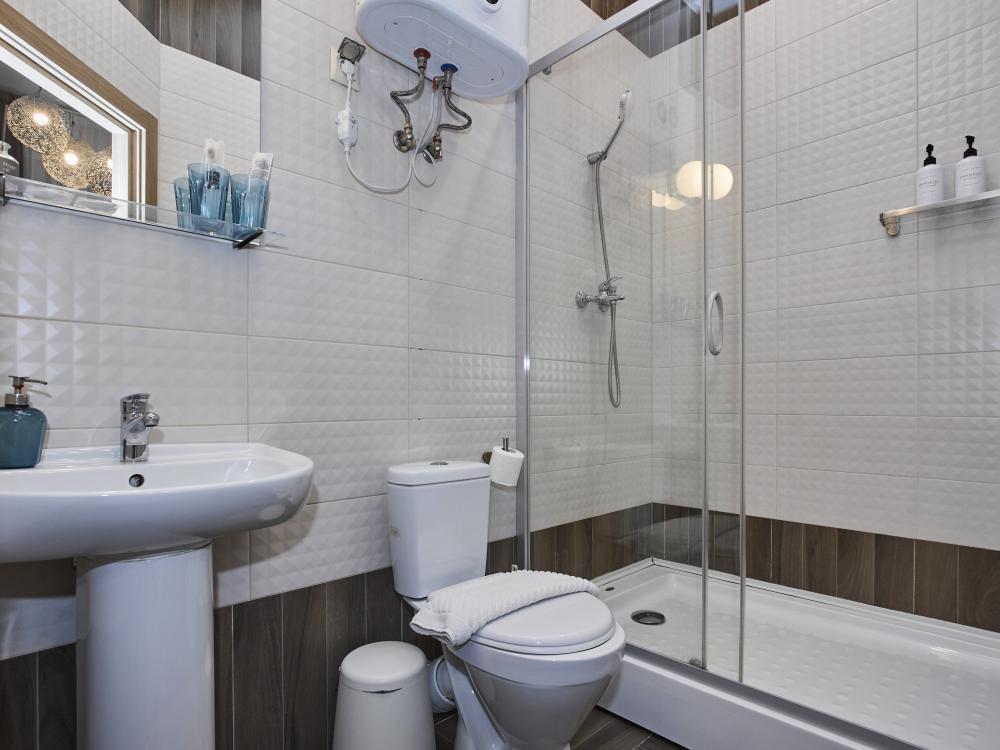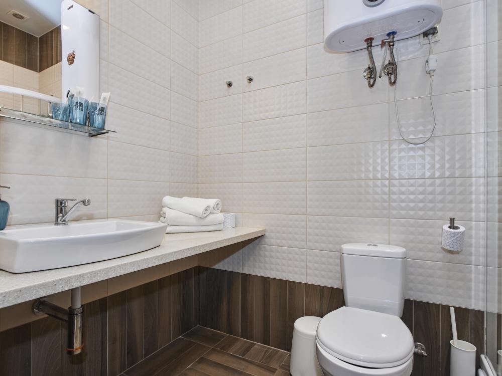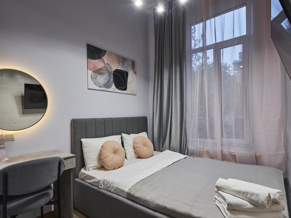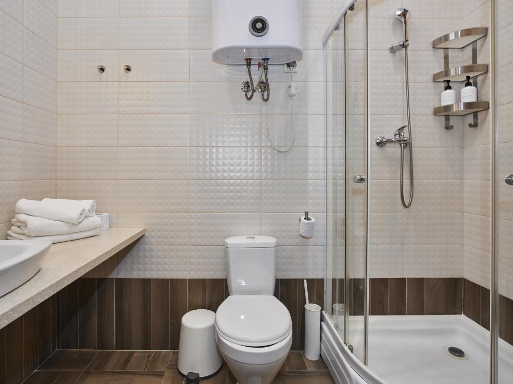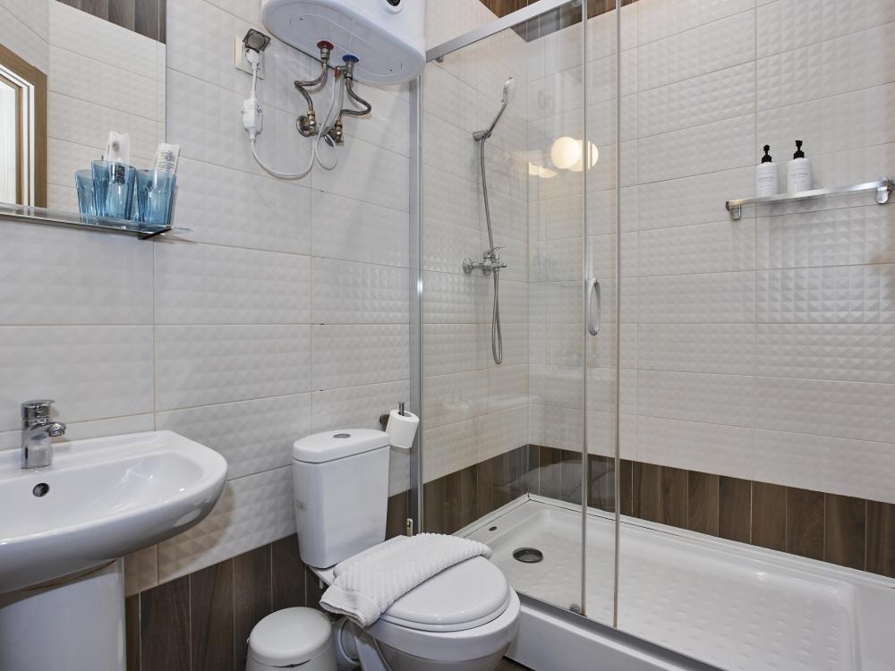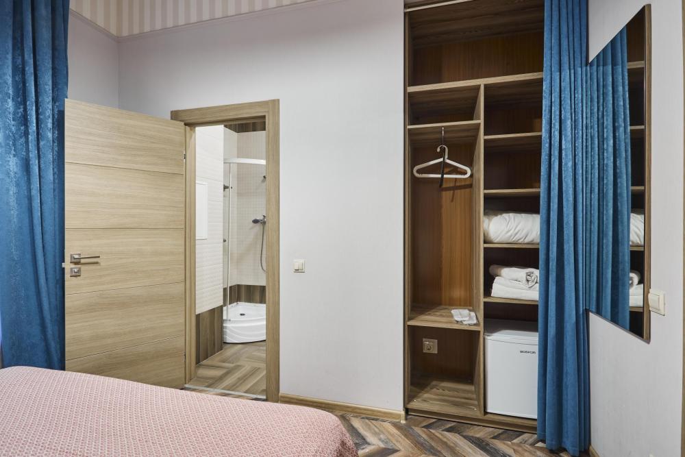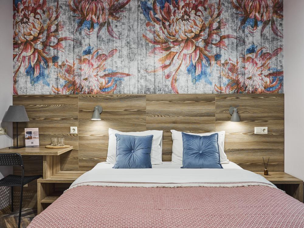 Двухместный с 1 двуспальной кроватью Площадь 16 м2 Наполняемость : Кровать размер 180*190, Прикроватные тумбочки 2шт, Рабочий стол, Шкаф/гардероб, Телевизор с плоским экраном. Отдельный санузел с душевой кабиной, Комплект полотенец, фен, белье и тапочки предоставляются бесплатно Шампунь, Гель для душа, Мыло, Шапочка для душа предоставляются бесплатно Гладильные принадлежности (гладильная доска и утюг) предоставляются бесплатно по запросу