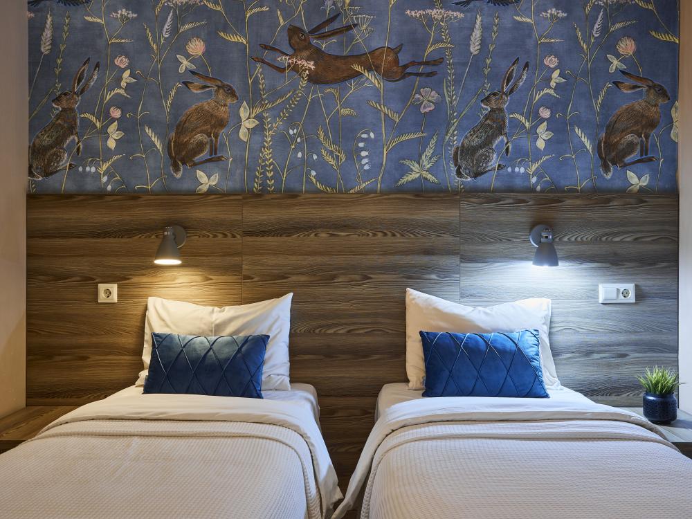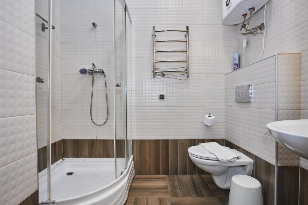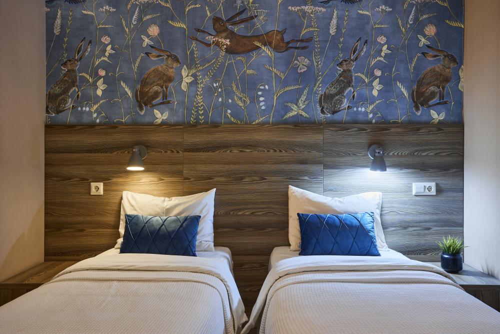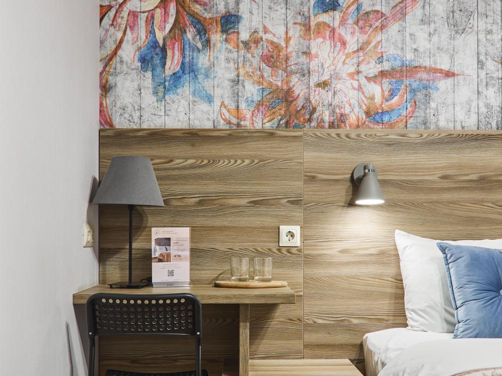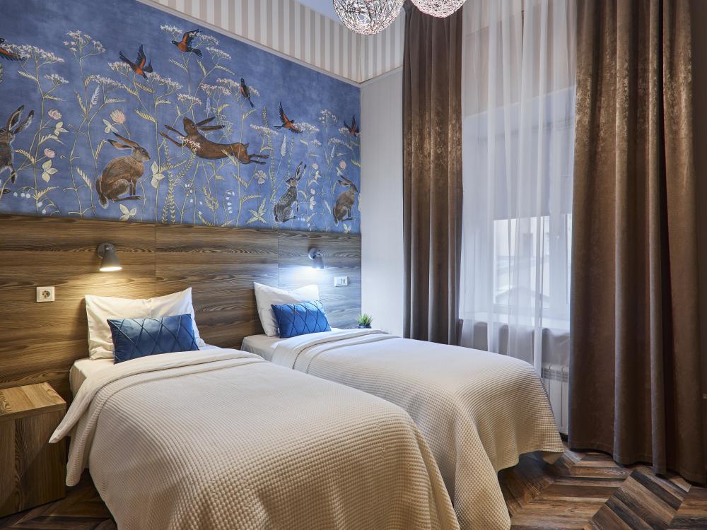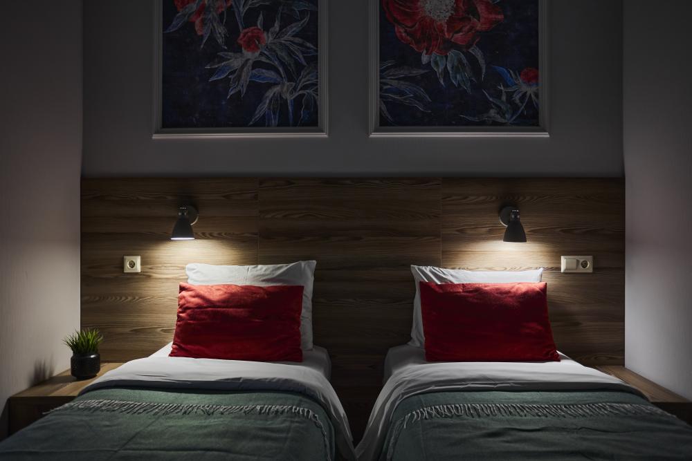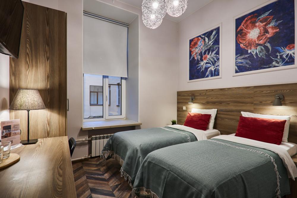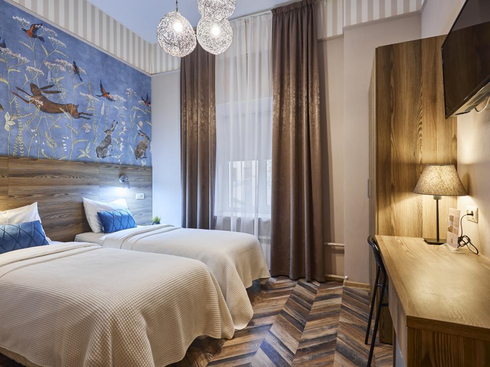 Стандартный двухместный с 1 кроватью или 2 отдельными кроватями по запросу Площадь 16 кв.м. Наполняемость : Кровать размер 180*190, либо 2 по 80*190 Прикроватные тумбочки 2шт, Рабочий стол, Шкаф/гардероб, Телевизор с плоским экраном Отдельный санузел с душевой кабиной, Комплект полотенец, фен, белье и тапочки предоставляются бесплатно Шампунь, Гель для душа, Мыло, Шапочка для душа предоставляются бесплатно Гладильные принадлежности (гладильная доска и утюг) предоставляются бесплатно по запросу