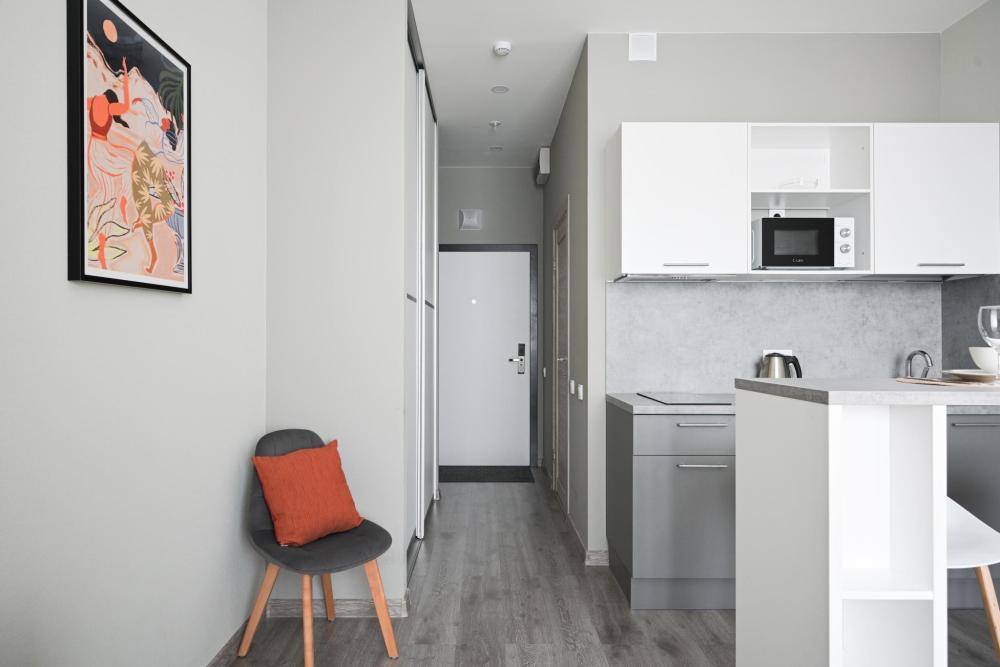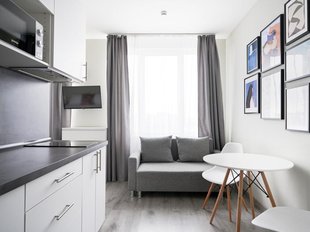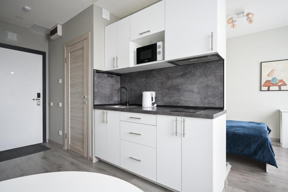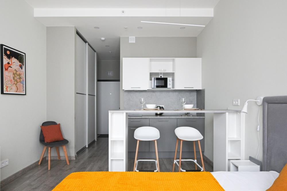 Стильная и современная студия в 2 минутах от метро Купчино! В апарт-отеле "Интуит" сдается абсолютно новая студия. Продуманная до каждой мелочи, с обустроенной кухней и очень просторным совмещенным санузлом. Эргономичное зонирование, удобная кровать, вместительный встроенный шкаф. Качественная мебель и техника, подобранная с заботой) Расположение очень удобное. В шаговой доступности: - Пятерочка, Перекресток, Окей, Лента; - ТРК Балкания Nоvа и ТК Балканский - Кафе и рестораны Транспортная доступность (на машина/такси): - Выезд на КАД в 5 минутах; - Аэропорт Пулково в 15 минутах; - Экспофорум в 20 минутах; - до центра 25 минут на метро. Воспользуйтесь шансом сделать своё пребывание незабываемым, благодаря следующим услугам: - Комфортное проживание в уютных и современных номерах, оснащенных необходимой техникой. - Собственная кухня в каждом номере для самостоятельного приготовления пищи. - Бесплатный высокоскоростной Wi-Fi для связи и развлечений. - Каждому гостю гарантирована чистота в соответствии с европейскими стандартами уборки, свежее постельное белье и полотенца по количеству гостей без дополнительной оплаты. Мы упростили процесс заселения и сделали его бесконтактным - вы сможете заехать в любое удобное для вас время без предварительного согласования. Выбирая нас, вы выбираете комфорт и удобство каждую минуту пребывания! - При заселении требуется паспорт. Также будет необходимо подписать договор краткосрочного найма. - Заезд с 14:00. Выезд до 11:00