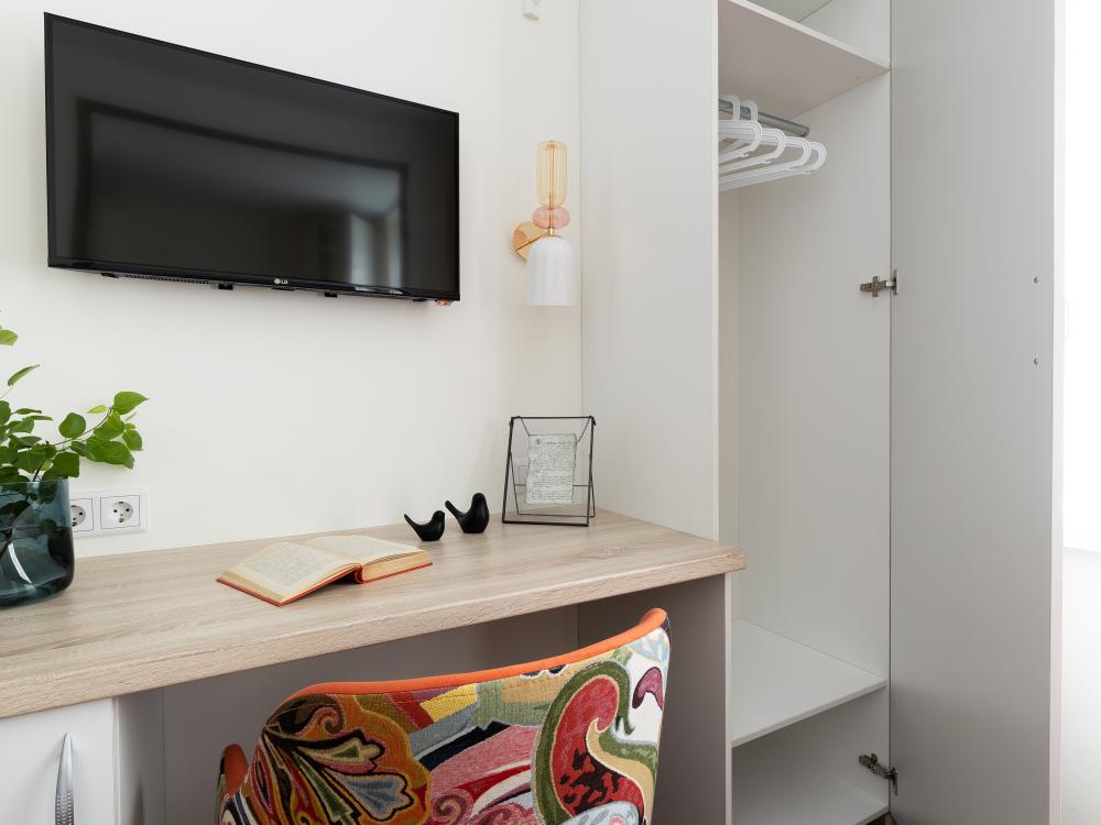 Современный и уютный апартамент ColorSpb на Фрунзе Наши апартаменты расположены в престижном районе у Московского парка Победы. Тихий зелёный двор создаёт атмосферу уюта, а рядом — всё необходимое для комфортной жизни: кафе, ресторан грузинской кухни, магазины, детские площадки, ТРК и удобный транспорт. Супер удобное местоположение - близкий выезд на КАД и ЗСД. Аэропорт и Экспофорум в хорошей транспортной доступности. Студия размещает до 2х гостей. Просторная студия в авторском дизайне — яркая, стильная и по-домашнему тёплая; Двуспальная кровать с ортопедическим матрасом и свежим белоснежным бельём; Мини-кухня: чайник, холодильник, СВЧ печь, посуда; Современная ванная с душем, феном и мягкими полотенцами; Рабочая зона с большим столом — удобно для ноутбука и документов; Smart TV и быстрый Wi-Fi для отдыха и работы; В общей зоне — стиральная и сушильная машины.