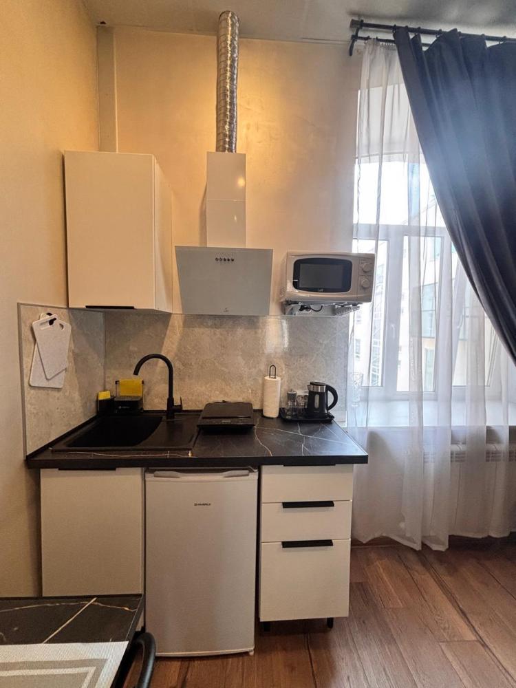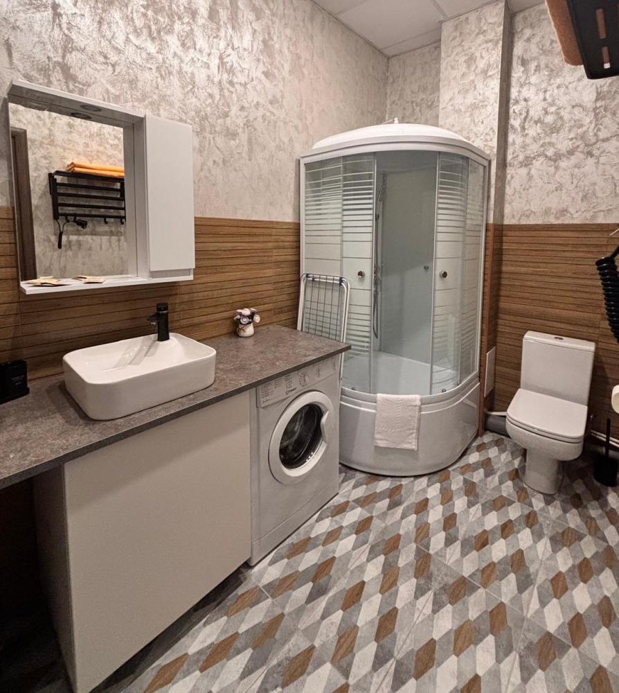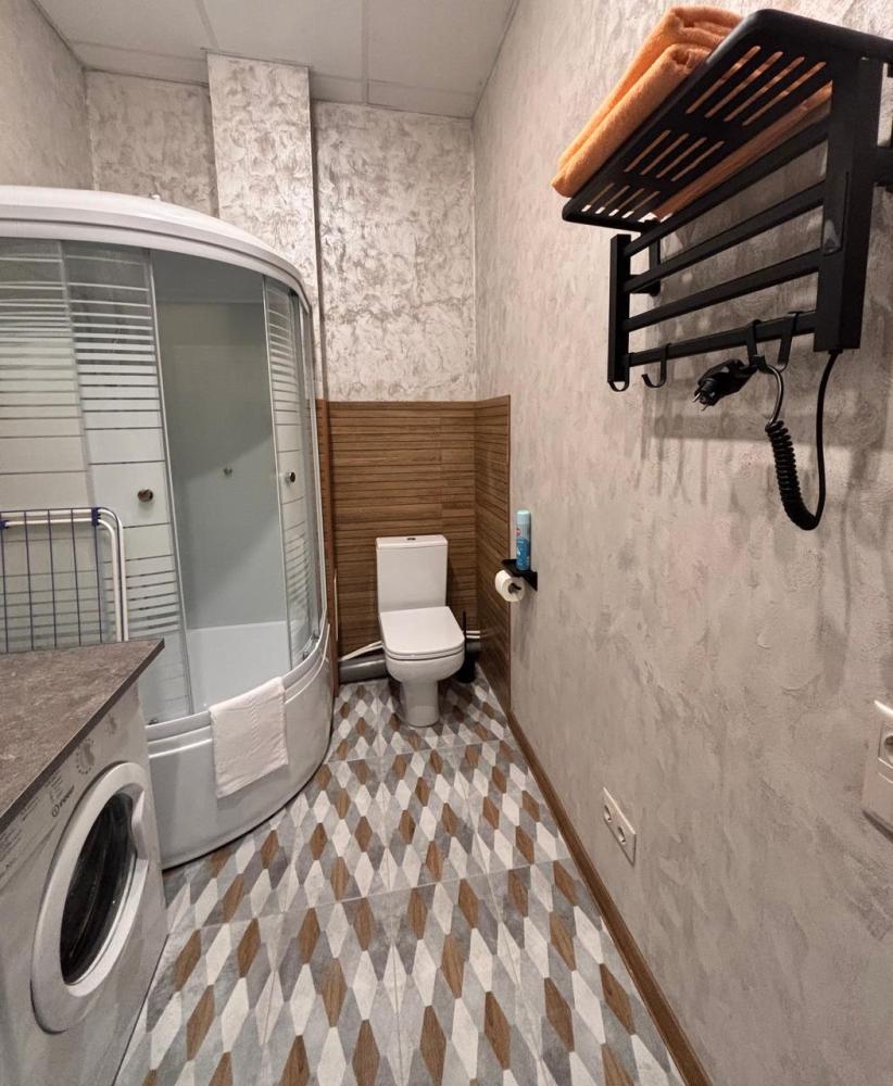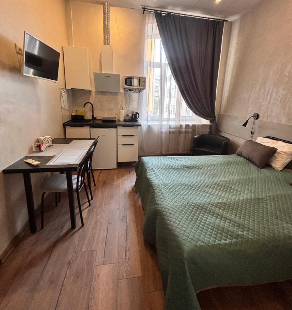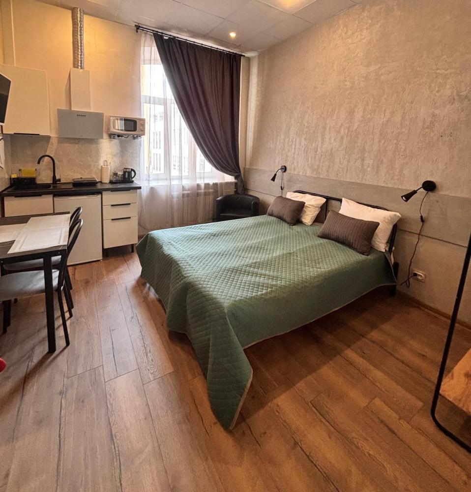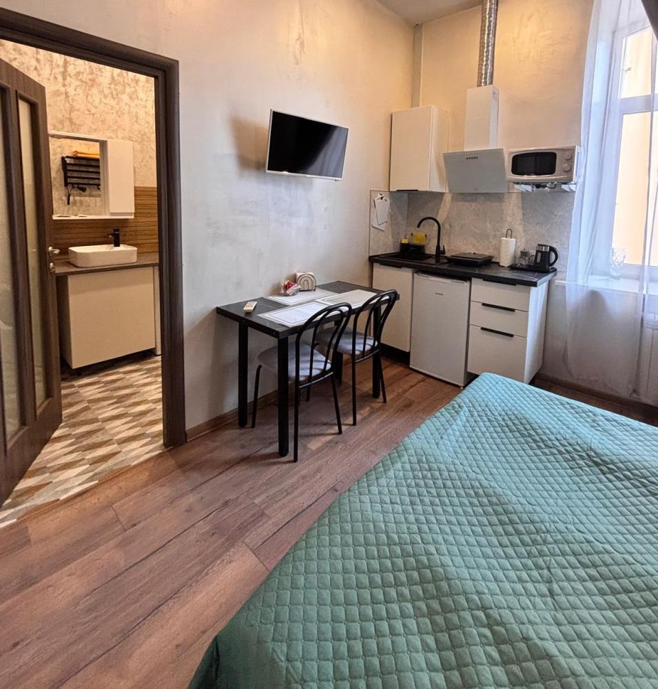 25 кв.м Студия вмещает до 2х человек В номере двуспальная кровать, кухонный уголок с плиткой, чайником, холодильником, свч и посудой Собственный санузел с душевой кабиной + стиральная машина WIFI бесплатный