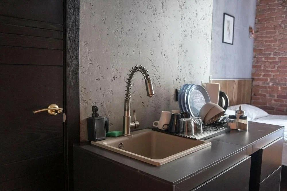 Уютные, комфортабельные апартаменты идеально подходят для размещения 2-х человек, оснащены бесплатным Wi-Fi, телевизором с дистанционным управлением, встроенной кухней с раковиной для мытья посуды, настольной электроплитой, необходимым набором посуды, кухонного инвентаря, столовыми приборами, холодильником и чайником. Санузел совмещен с душем. Предоставляются тапочки и необходимый набор полотенец. Из окон открывается живописный вид на город.