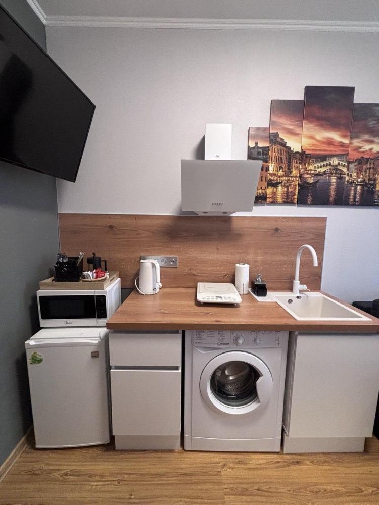 30 кв.м, Максимум 4 гостя Собственный с/у с ванной TV, кондиционер Оборудованная кухня: холодильник, СВЧ, индукционная плитка, вытяжка, комплект посуды, чайник 2 комнаты : Спальня с двуспальной кроватью + Гостиная с двуспальным диваном