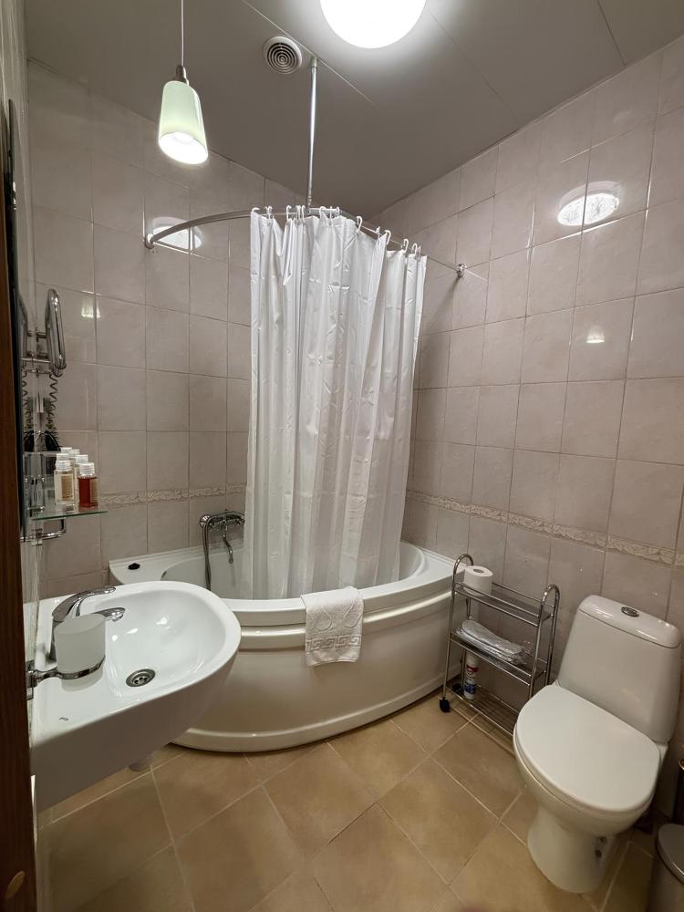 18 кв.м Две односпальные кровати + Раскладушка Максимум 3 гостя Комната 20 кв.м. В комнате есть все необходимое для комфортного проживания: бесплатный Wi-Fi, телевизор, холодильник, собственный санузел с душевой кабиной, тапочки, шампунь и гель для душа