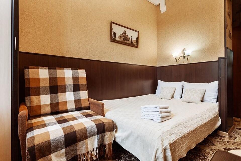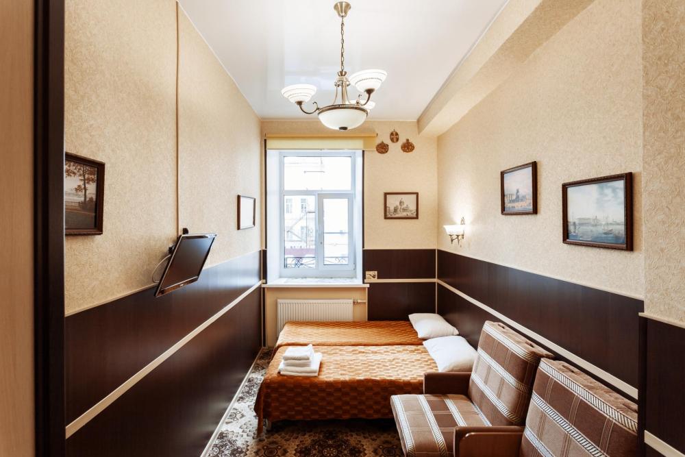 Стандартный 2-х местный номер, площадь комнаты – 11 кв.м Меблировка: 1 кровать двухспальная (140х190см) и 1 кресло-кровать (90х190см) или 1 двуспальная тахта (140х190см) и 2 кресло-кровати (90х190см); •БРА; •Видео/аудио: •Телевизор; DVD-плеер, радио, наушники •Интернет/телефония: •Wi-Fi; городской телефон •Электроника: •Микроволновая печь; холодильник, эл. чайник; мини-кухня с посудой для приготовления пищи; •Ванная комната: •туалет/душ; полотенцесушитель, теплый пол; фен; косметическое зеркало •Внешняя территория и вид из окон: •Вид на двор •Мебель: •Зеркало; шкаф для одежды; мягкая мебель, стулья, ковровое покрытие •Прочее: •Гель для душа; шампунь; мыло •Комплекты полотенец •Посуда •Сейф •Москитная сетка •Фумигатор •Ионизатор воздуха