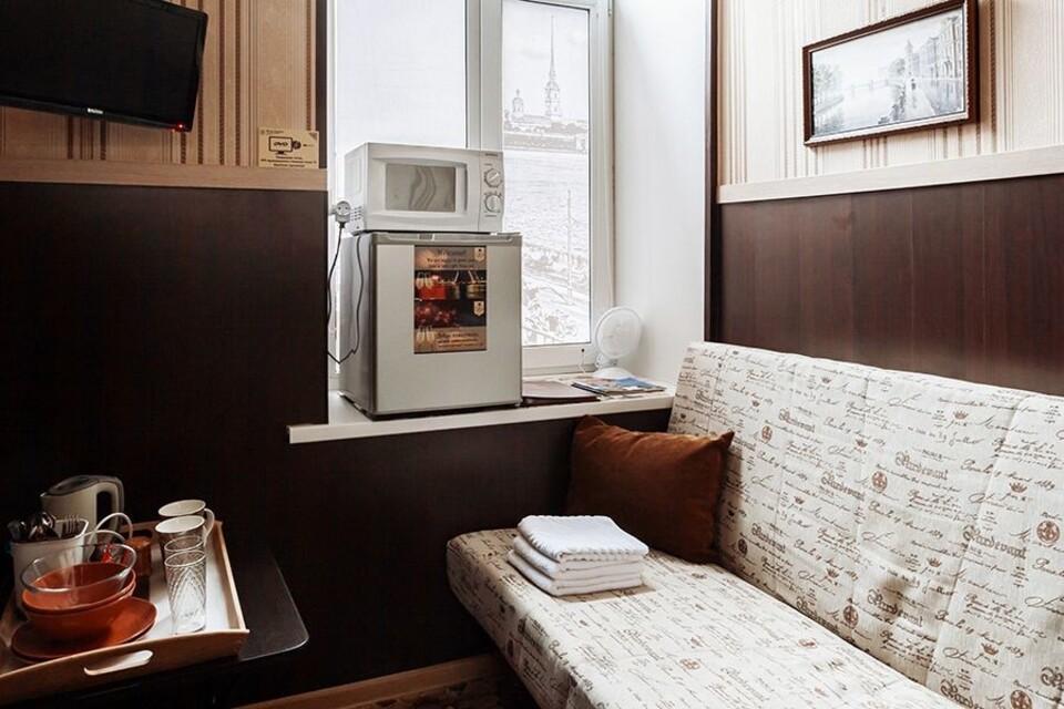 В номере: Диван (120*190), Площадь комнаты 8 кв.м. • Видео/аудио: Телевизор; DVD-плеер, радио, Наушники • Интернет/телефония: Wi-Fi; Городской телефон • Электроника: Микроволновая печь; Холодильник, Эл. чайник • Ванная комната: Туалет/душ; Полотенцесушитель, Теплый пол; фен; Косметическое зеркало; Гель для душа; шампунь; Мыло; Комплекты полотенец • Внешняя территория и вид из окон: Вид на двор • Мебель: Зеркало; Мягкая мебель, Стулья, Ковровое покрытие • Прочее: Посуда; Сейф; Москитная сетка; Фумигатор; Ионизатор воздуха