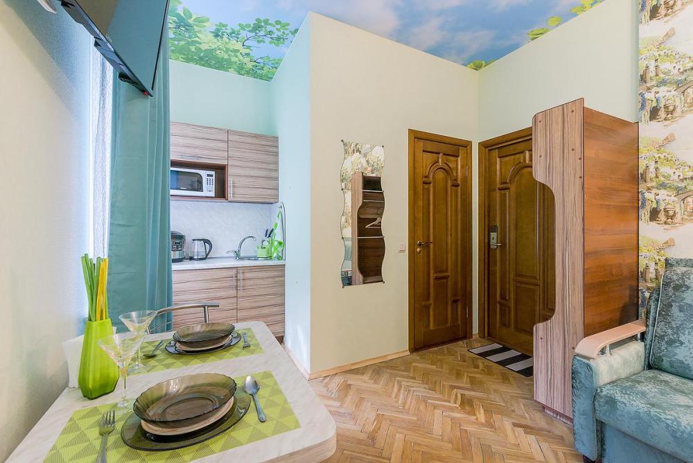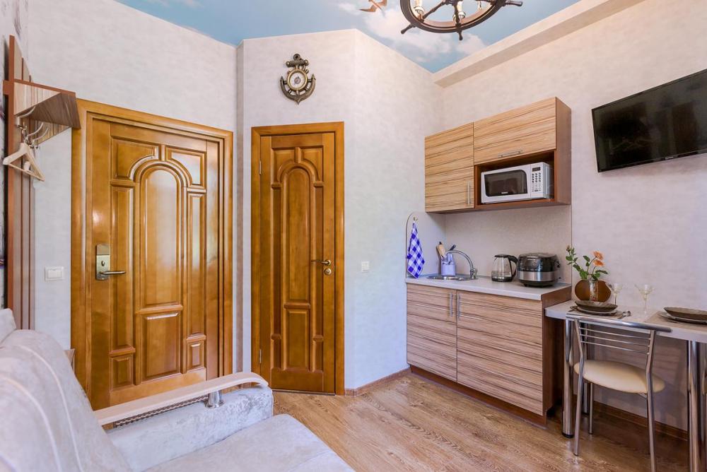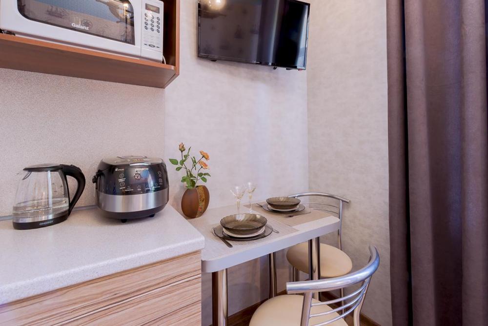 Гостям предоставляются для размещения 4 комнаты. В каждой комнате-студии есть душ, туалет, кухонная зона, электрический чайник, мультиварка, СВЧ, холодильник, столовые приборы, тарелки, чашки. В комнате- двуспальная кровать, диван-кровать, телевизор. Так же в общем доступе (на 4 комнаты) стиральная машина, стиральный порошок, сушилки для белья, гладильная доска, утюг. Предоставляется бесплатный Wi-Fi, а также постельное белье, полотенца, гель для душа, шампунь, жидкое мыло, туалетная бумага, в холодное время года при необходимости предоставляем обогреватель.