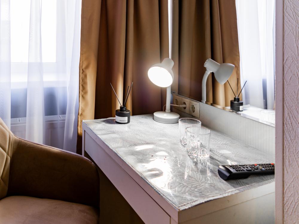 Комнаты в тихом центре Петербурга с атмосферой конца XIX века. Оснащены всем необходимым для комфортного проживания гостей : удобные кровати с качественным бельём, холодильник, телевизор, фен, бесплатные туалетные принадлежности и тапочки, быстрый Wi-Fi.