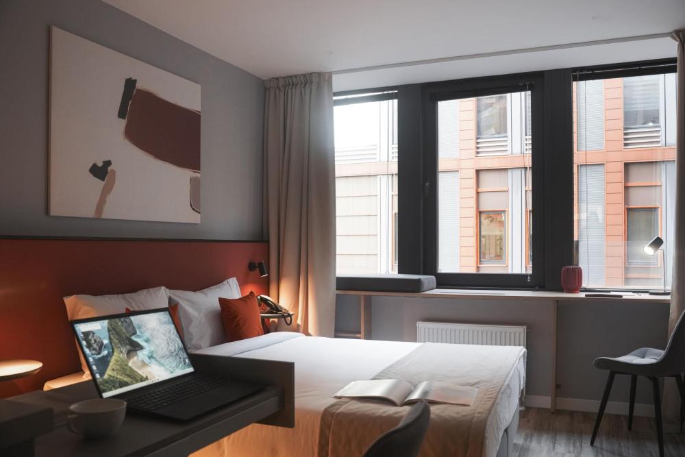 Стандартный номер с одной двуспальной кроватью. Совмещенный санузел с душевой кабиной. Есть кухонная зона с посудой, чайником и варочной поверхностью. Постельное белье и полотенца предоставляются.