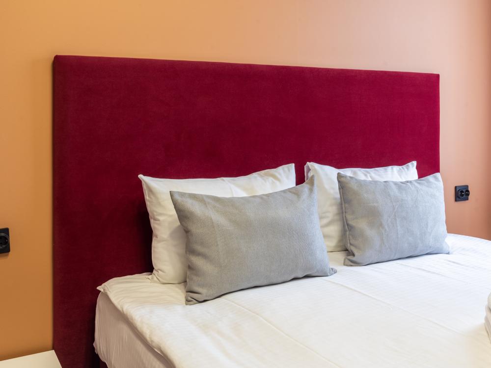 Площадь номера - 9 м², высота потолка - 3 м. Двухместный номер с 1 большой кроватью с ортопедическим матрасом. В номере центральная система вентиляции воздуха. Без вида. Оснащение номера: - зона прихожей с полками и вешалками для одежды; - зеркало; - прикроватные полочки; - индивидуальные лампы для чтения; - складной стол; - настольная лампа; - мягкий стул; - табурет; - телевизор с плоским экраном и USB-разъемом; - телефон для связи с ресепшн; - спутниковое телевидение; - Wi-Fi; - корзина для мусора; - комплект полотенец; - гипоаллергенное постельное белье; - светонепроницаемые шторы; - беруши; - щетка для одежды; - рожок; - губка и салфетка для обуви; - вода в бутылках по количеству проживающих при заезде; - тапочки, халат, шапочка для душа, зубной/бритвенный набор, гигиенический набор, швейный набор - по запросу. В ванной комнате: - душ без поддона; - раковина, туалет; - средства личной гигиены (шампунь-гель для душа, жидкое мыло для рук, туалетная бумага); - зеркало; - фен; - электрический полотенцесушитель; - корзина для мусора; - стакан; - полотенце для ног.