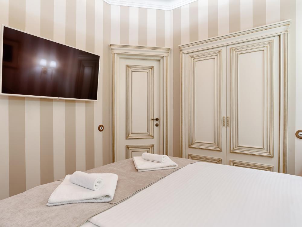Квартира в классическом интерьере, с новым ремонтом из натуральных качественных материалов, отдельной спальней, отдельной кухней и большим санузлом с ванной. Имеется кондиционирование, что является важнейшим дополнением при размещении в центре, особенно летом. За апартаментами закреплено парковочное место в закрытом дворе, что крайне важно в связи с тем, что на главных улицах города введены платные зоны парковки. Окна выходят в тихий двор. Идеально подходят для пары.