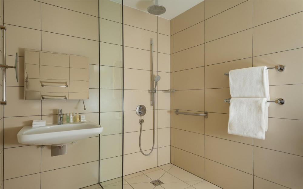 Интерьер номера оборудован всем необходимым для комфортного проживания людей с ограниченными возможностями. Просторное пространство номера, площадью 34 кв.м. включает в себя поручни, оборудованную душевую кабину, а также бесплатный Wi-Fi с высокой скоростью интернета, чтобы вы всегда были на связи. Спальное место готово разместить одну или две персоны на комфортабельной двуспальной кровати.
