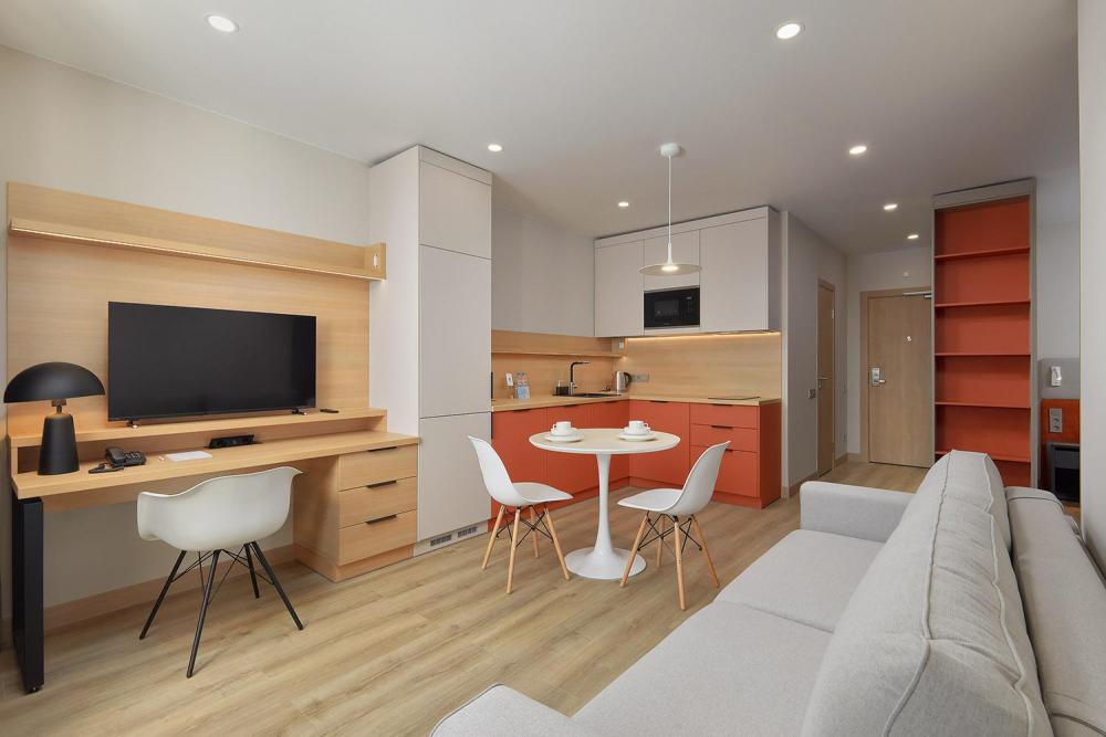 Улучшенный апартамент категории Corner площадью от 29 до 40 кв.м., с отдельными спальной и кухонной зонами, а также просторными шкафами для хранения вещей, идеально подходит для комфортного проживания 2 гостей. Апартамент оснащен одной большой или двумя раздельными кроватями с мягким изголовьем и прикроватными тумбочками. Интерьеры выполнены в спокойных тонах. В апартаменте имеется полностью оборудованная кухня, круглый обеденный стол и рабочая зона с письменным столом и стулом. Гостям доступна умная колонка «SberBoom» со встроенным ассистентом Салют, а также умный телевизор Sber с доступом к популярным стриминговым сервисам и онлайн-кинотеатрам. Возможно размещение третьего гостя на дополнительном спальном месте (услуга платная), а также предоставление детской кровати по запросу. Часть номеров данной категории оборудована удобствами для проживания гостей на инвалидных колясках и маломобильных групп населения.