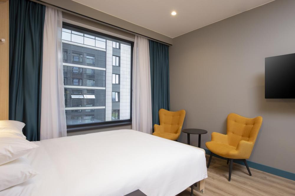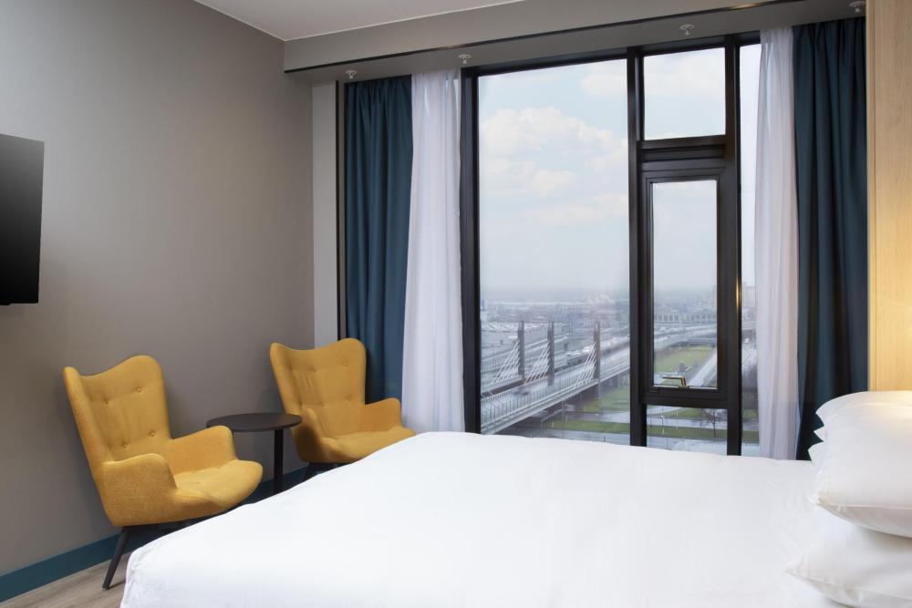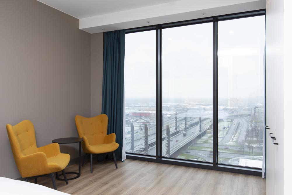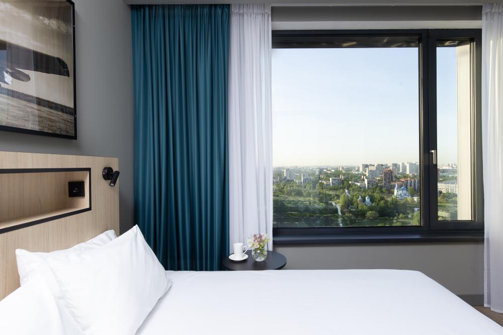 Уютный номер площадью 25 кв.м. с одной двуспальной кроватью, которая может трансформироваться в диван. Номера расположены на высоких этажах, из окон открывается вдохновляющих вид на Пулковский парк. Продуманное пространство будет комфортным вариантом и для встречи с коллегами, и для спокойного сна. Каждый номер оснащен мини-кухней с холодильником, варочной поверхностью и набором посуды, рабочей зоной, беспроводным интернетом и ЖК-телевизором. Ванная комната с душевой кабиной, набором необходимых принадлежностей, включая фен.