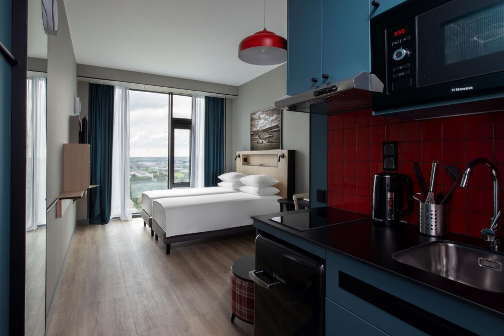 Номер с двумя раздельными кроватями. Зона кухни наполнена всей необходимой техникой и набором посуды, что обеспечивает максимальный комфорт пребывания. Оставайтесь на связи благодаря бесплатному беспроводному Интернету. Другие удобства включают сейф, фен, принадлежности для приготовления чая и кофе, гладильная доска и утюг, бесплатную минеральную воду.