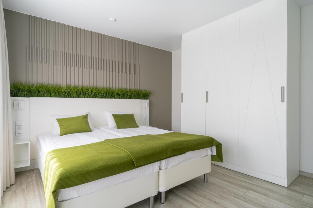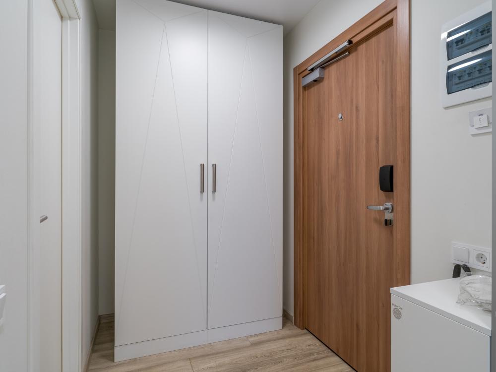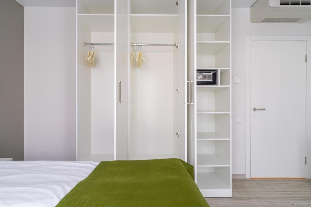 Апартаменты Студио выполнены в светлых тонах с добавлением ярких зелёных акцентов. По вашему запросу предоставляется 1 большая или 2 раздельные кровати. На площади 24 кв. м. расположена спальная зона, полностью оборудованная кухня с индукционной плитой, посудомоечной машиной и полным набором посуды и принадлежностей, а также собственная ванная комната со стиральной машиной, косметическим набором и полотенцами. Для комфорта гостей предусмотрен высокоскоростной WiFi, микроволновая печь, утюг и гладильная доска, и сушилка для белья. В каждом апартаменте находится индивидуальный сейф для ценных вещей и документов. Для самых маленьких гостей до 4х лет бесплатно предоставим детскую кроватку и стульчик для кормления, и набор пластиковой посуды (возможность просим уточнять при бронировании).
