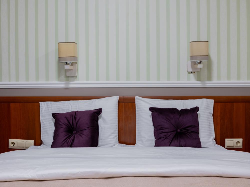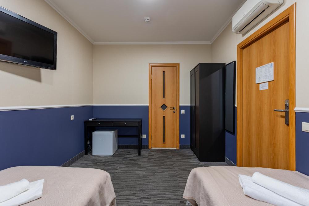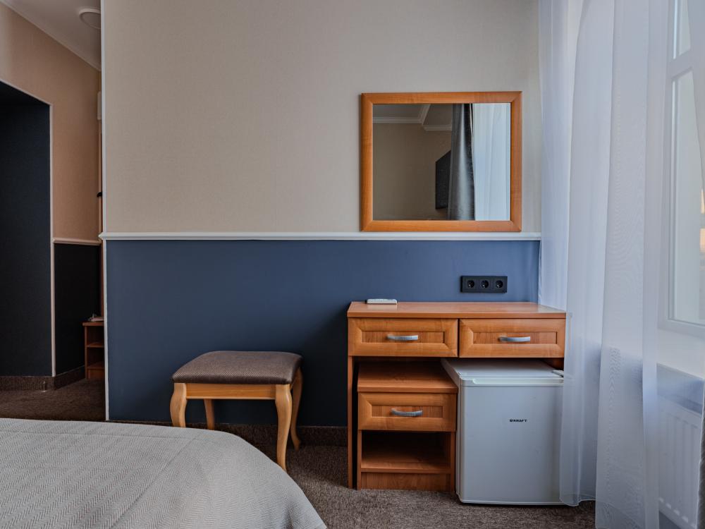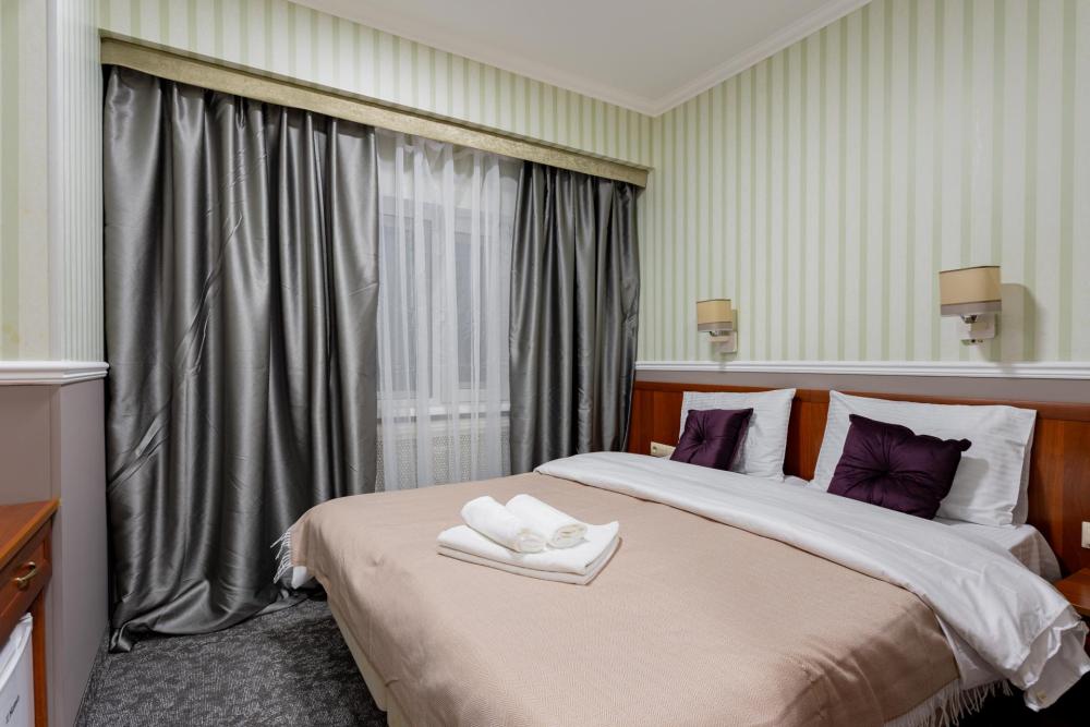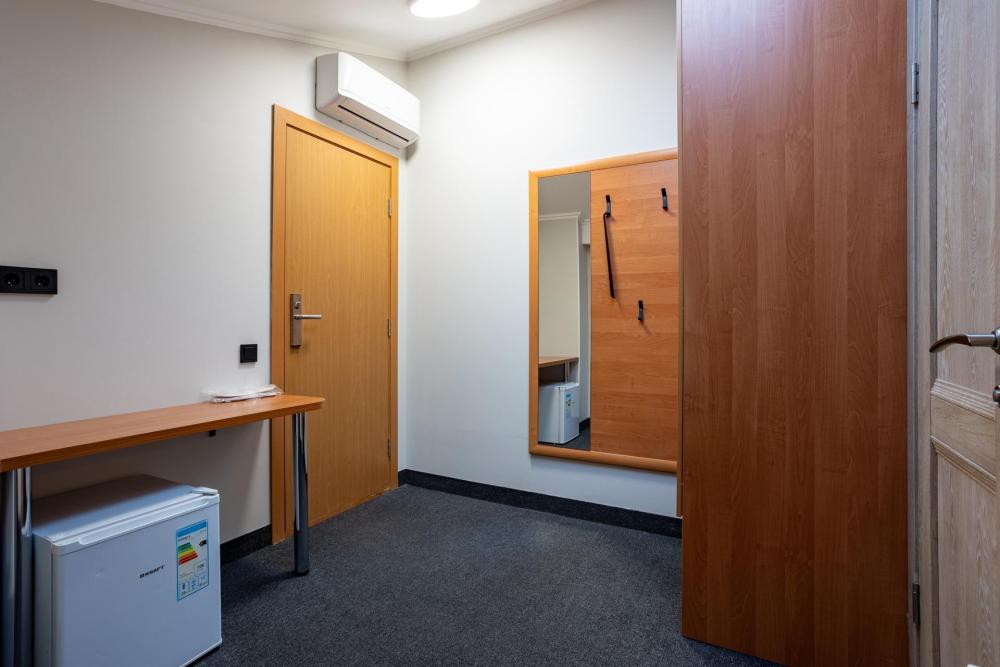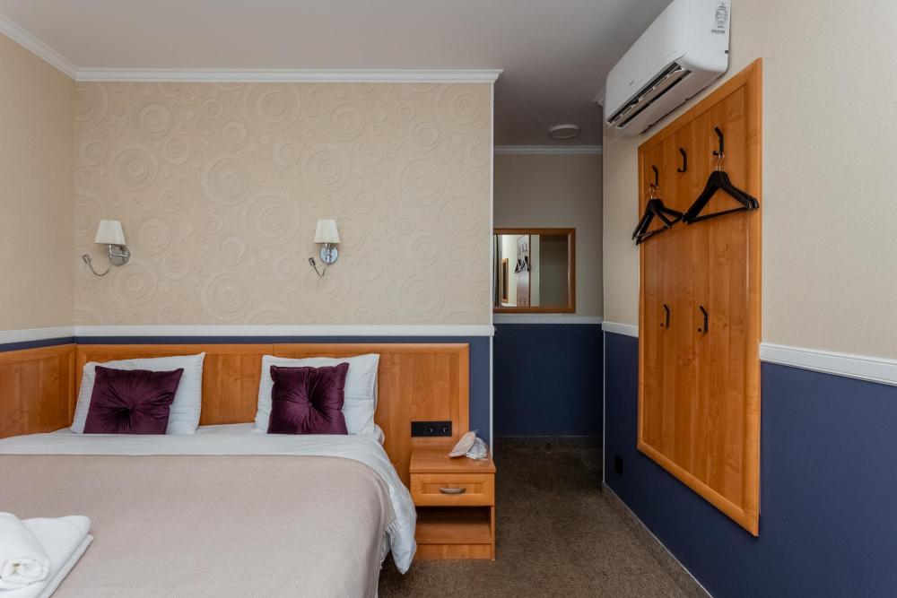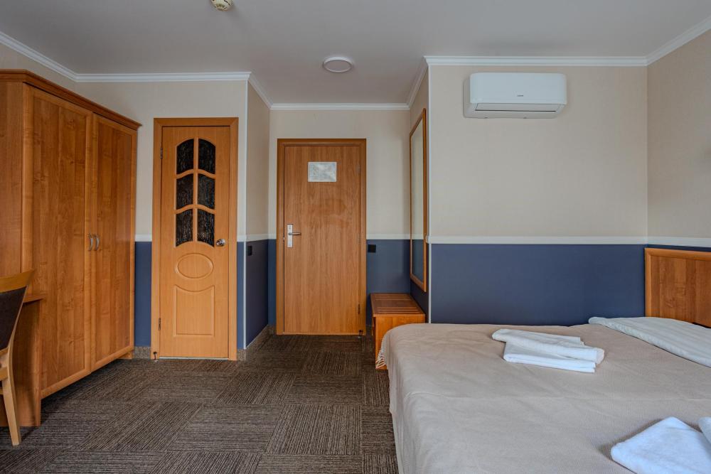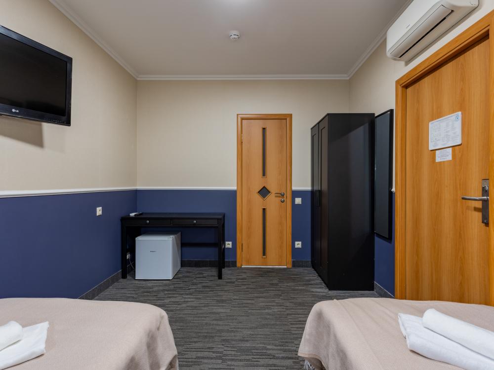 Двухместная/одноместная комната категории "Комфорт" с одной широкой кроватью или двумя раздельными кроватями и собственной ванной комнатой. Комната оборудована телевизором, феном, кондиционером и холодильником.