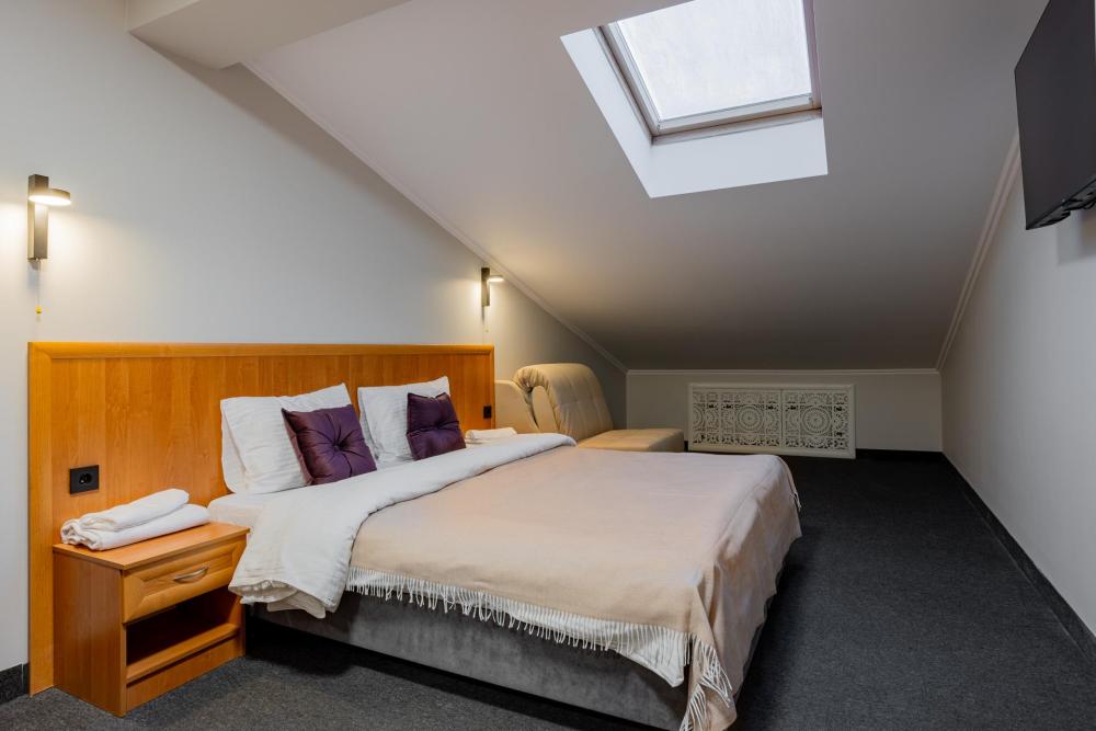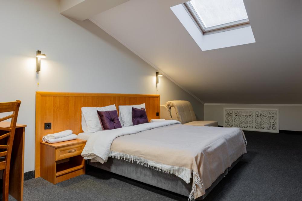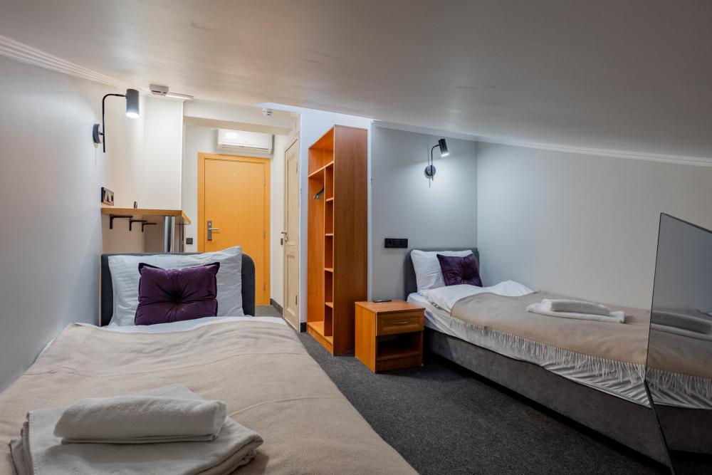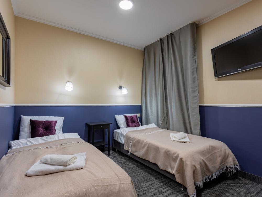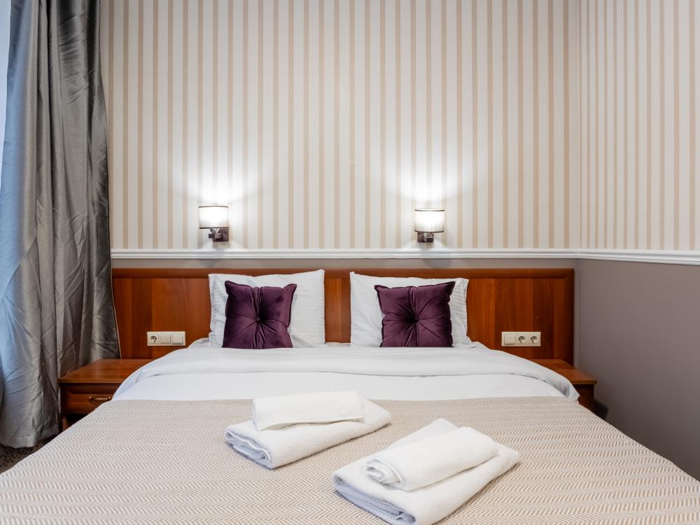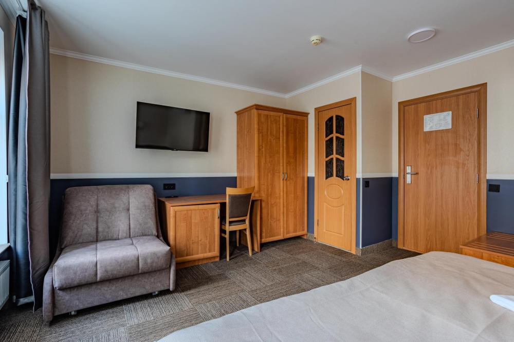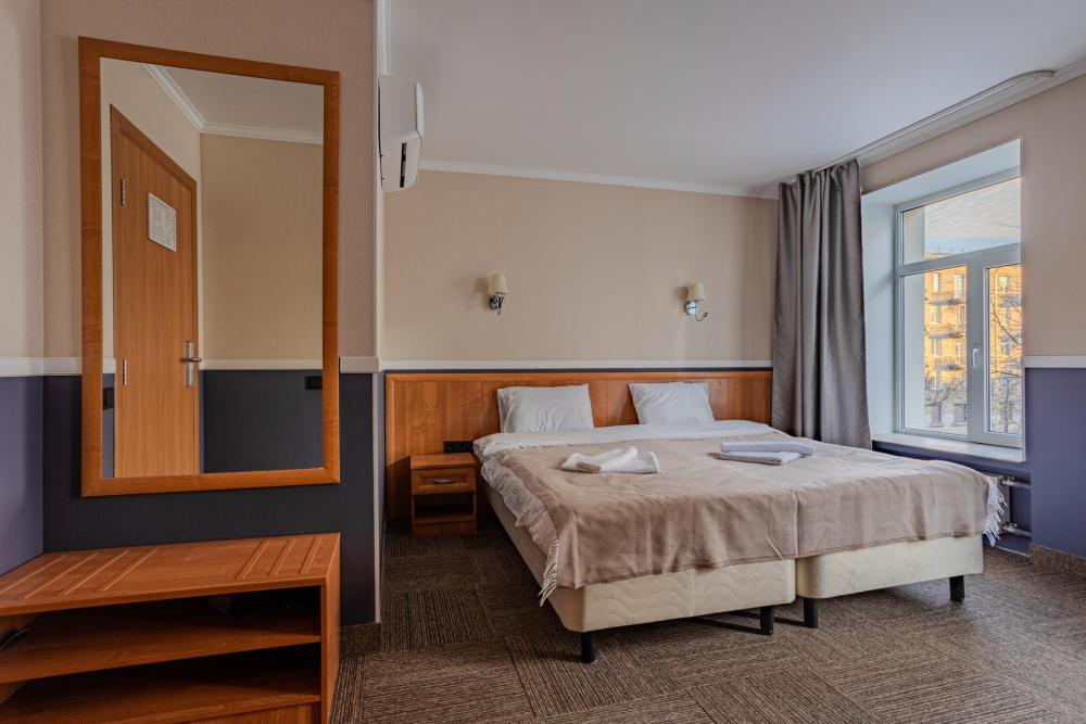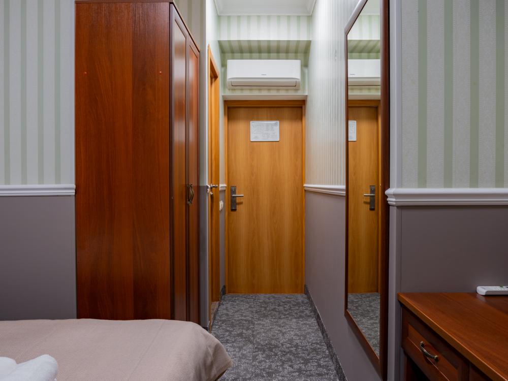 Двухместная/одноместная комната категории "Комфорт" с одной широкой кроватью или двумя раздельными кроватями и собственной ванной комнатой. Комната оборудована телевизором, феном, кондиционером и холодильником.