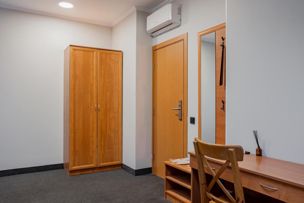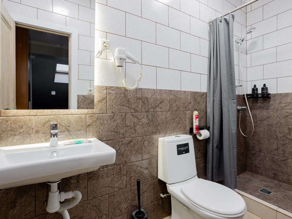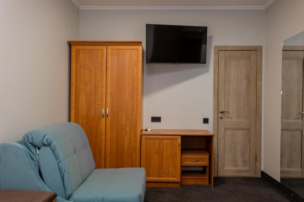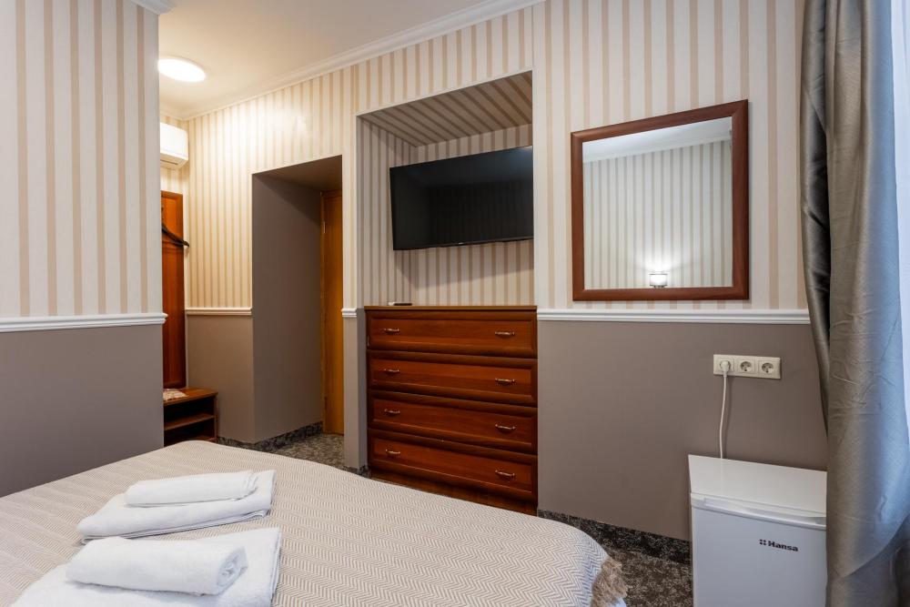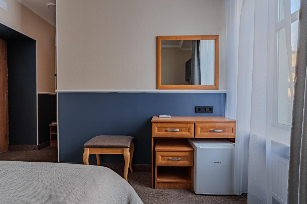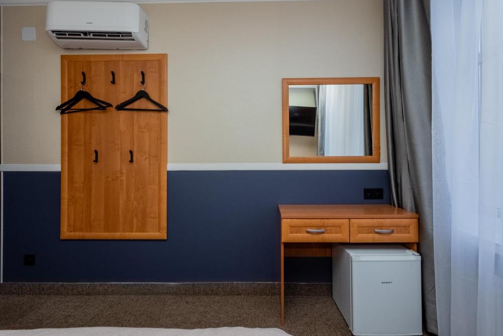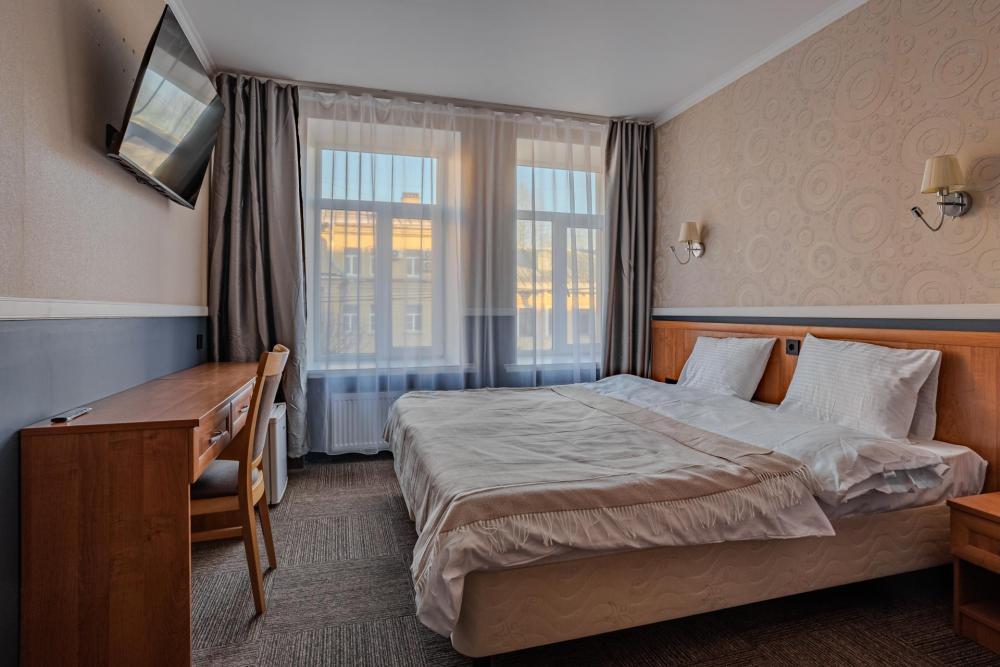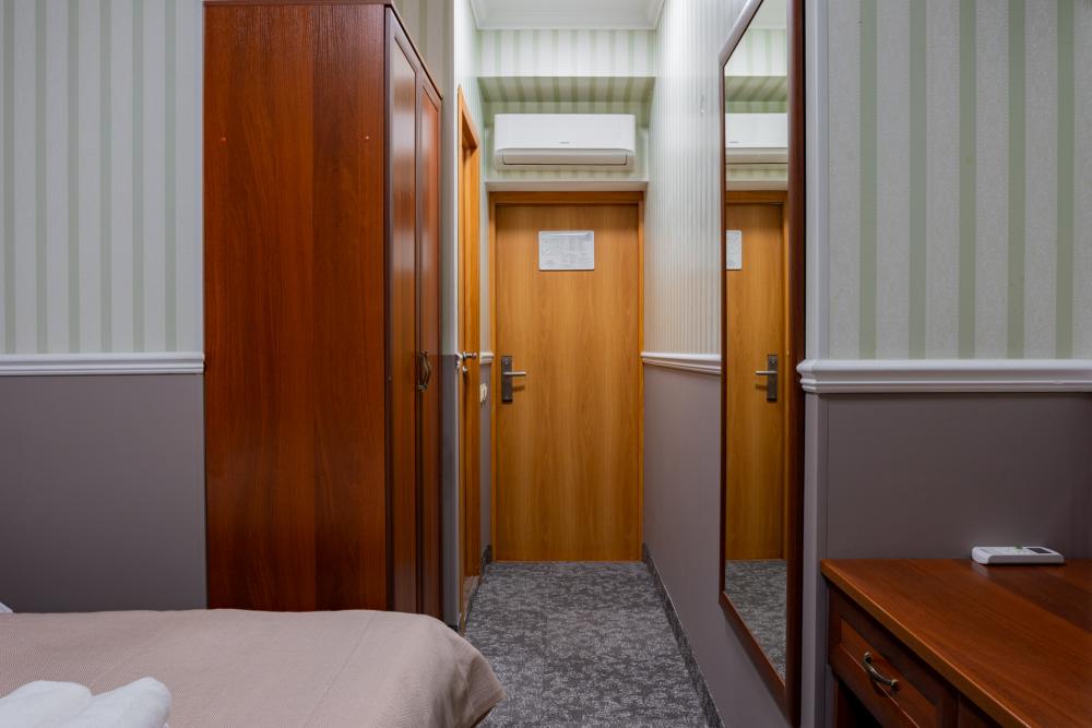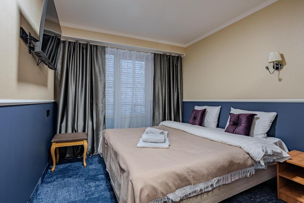 Двухместная комната категории "Стандарт" с одной широкой кроватью или двумя раздельными кроватями и собственной ванной комнатой. Комната оборудована телевизором, феном и кондиционером.