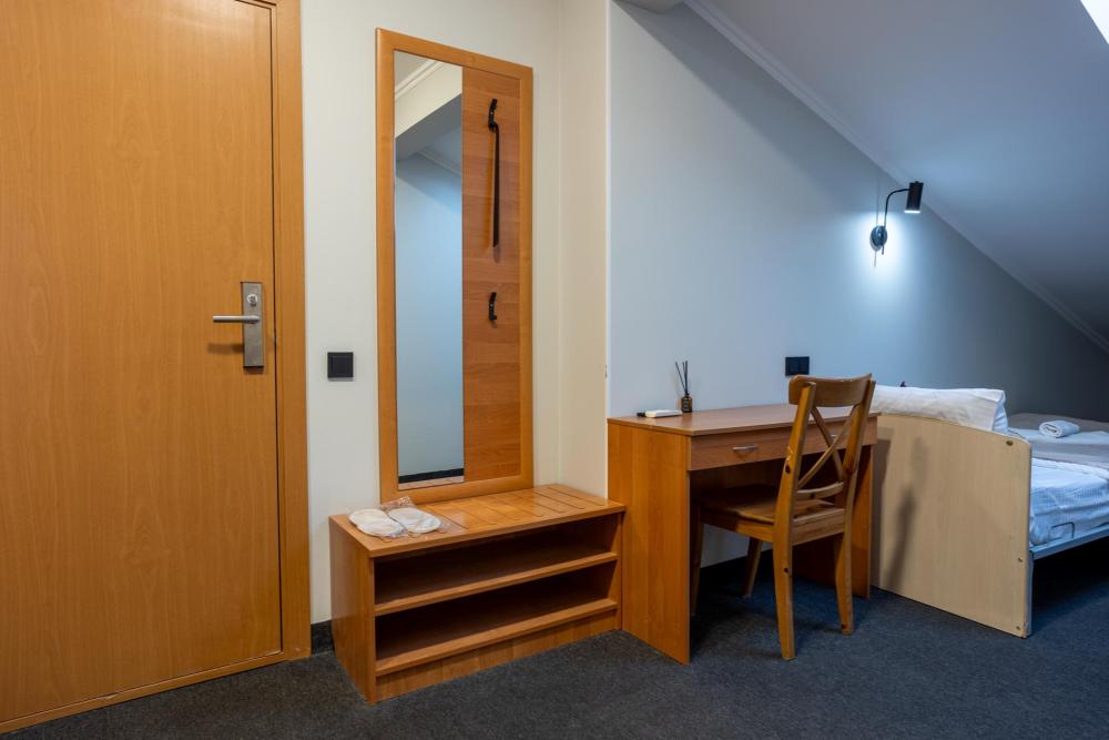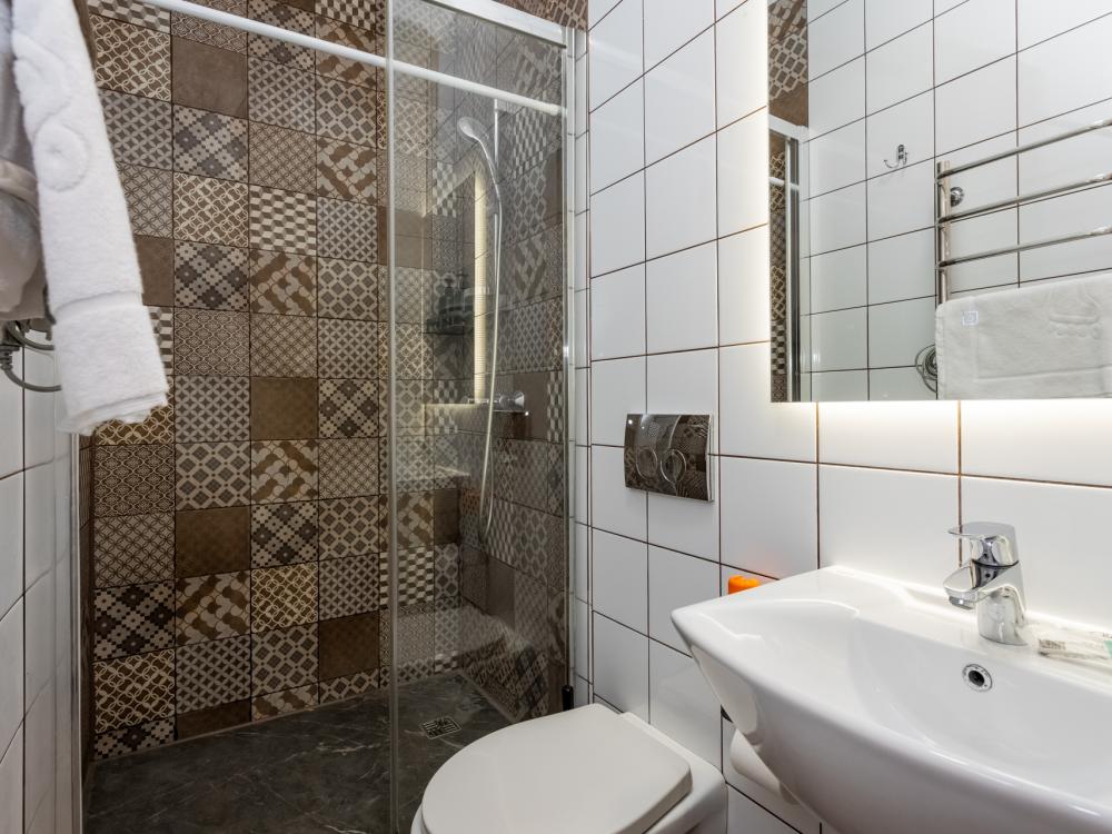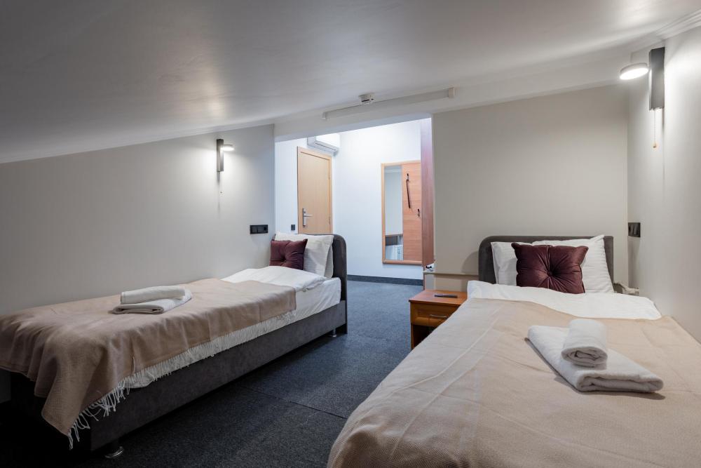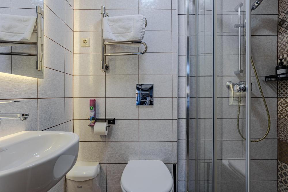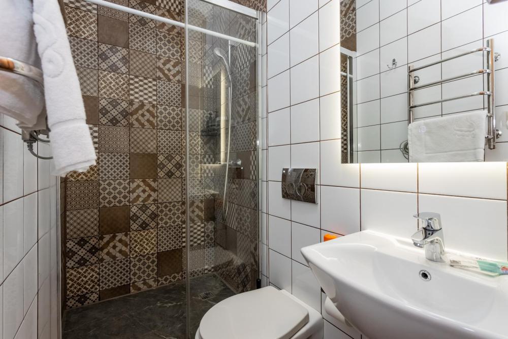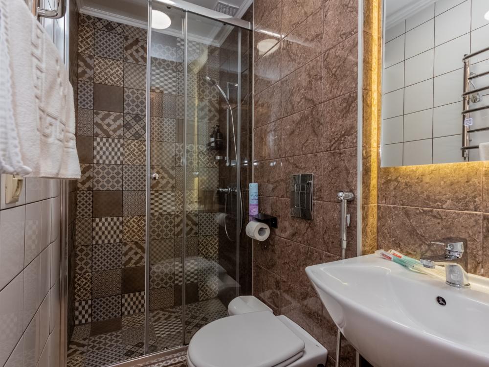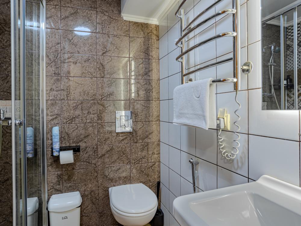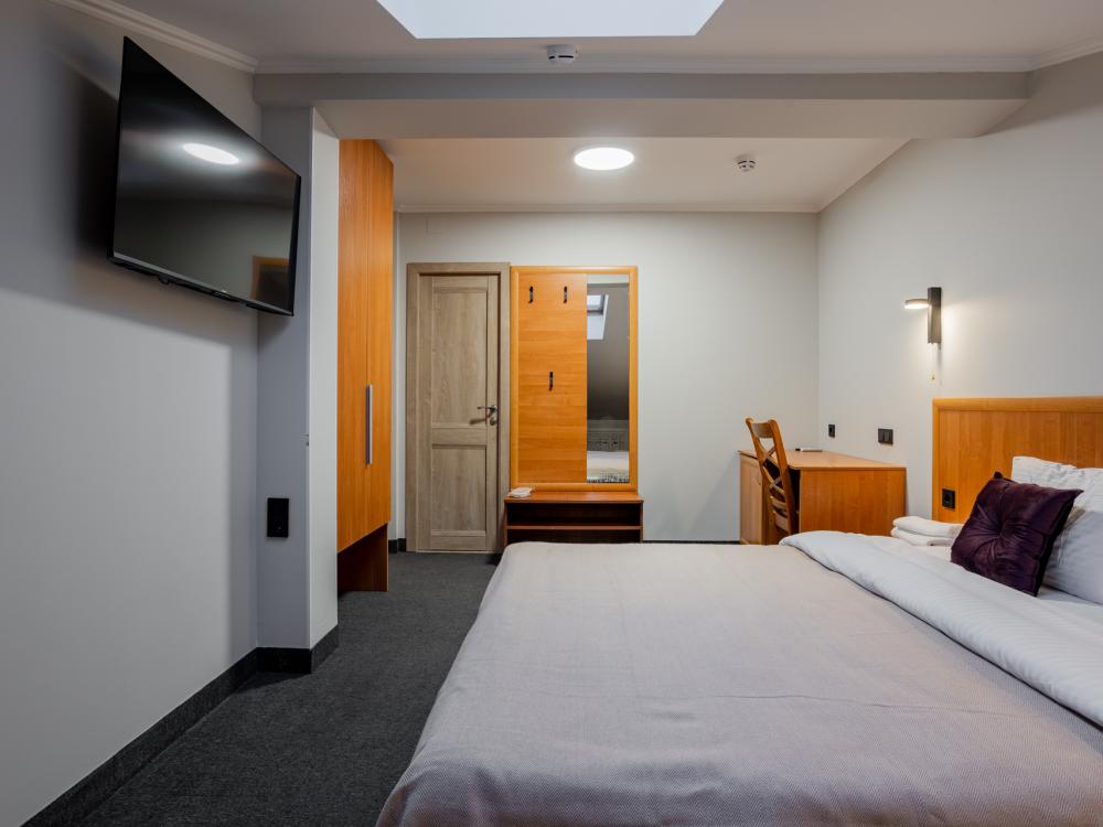 Двухместная комната категории "Стандарт" с одной широкой кроватью или двумя раздельными кроватями и собственной ванной комнатой. Комната оборудована телевизором, феном и кондиционером.