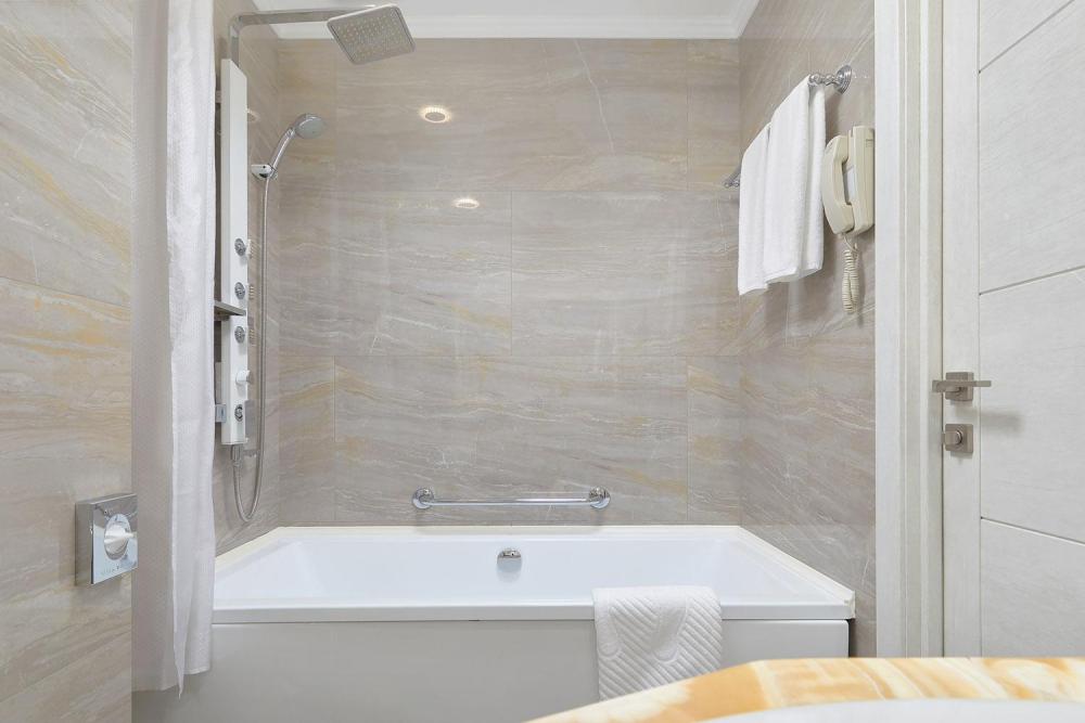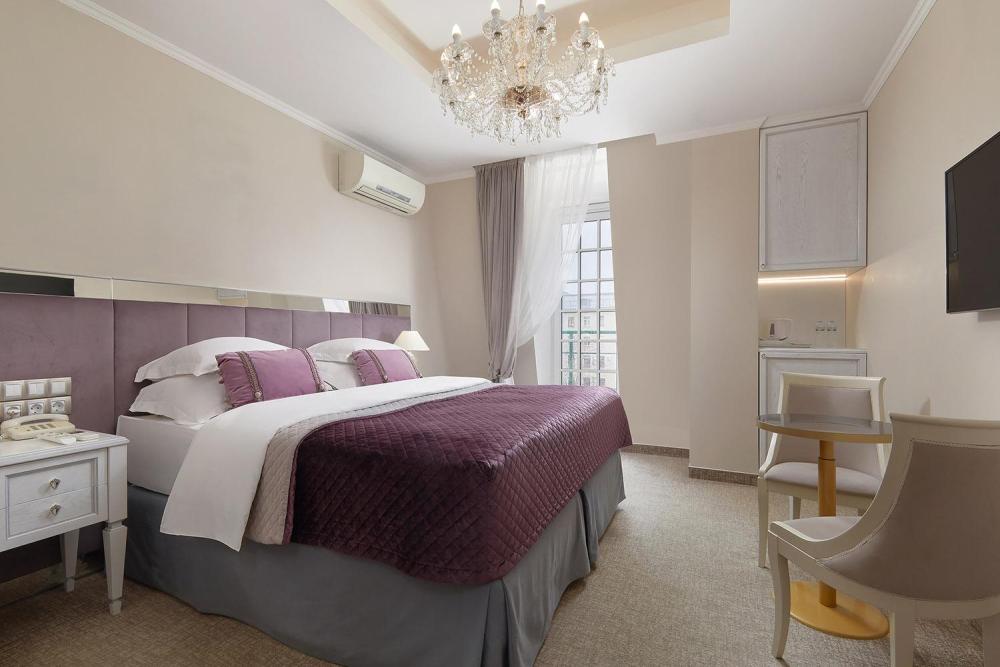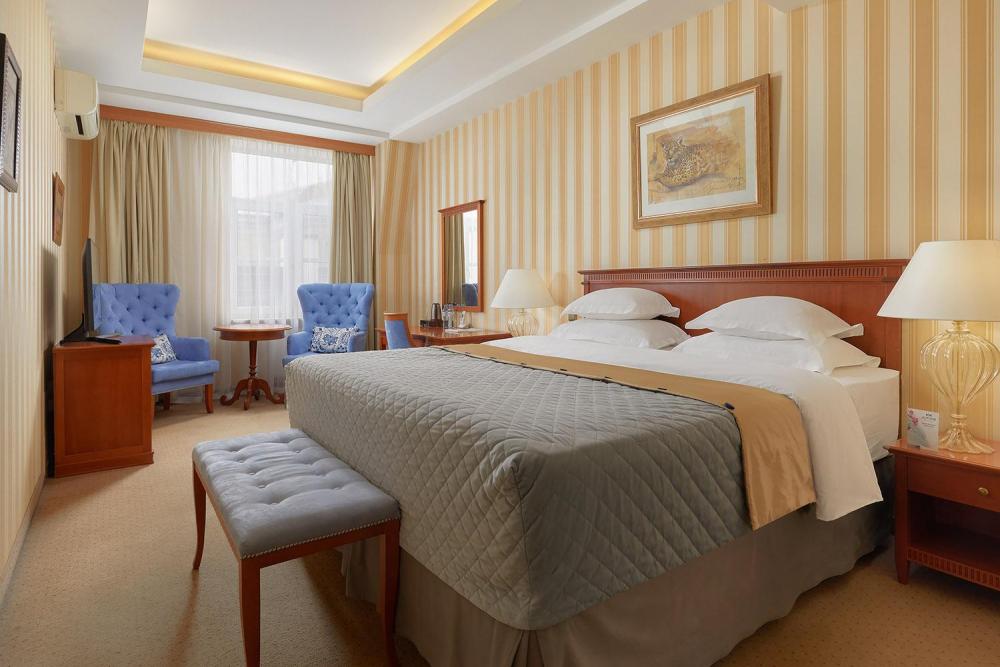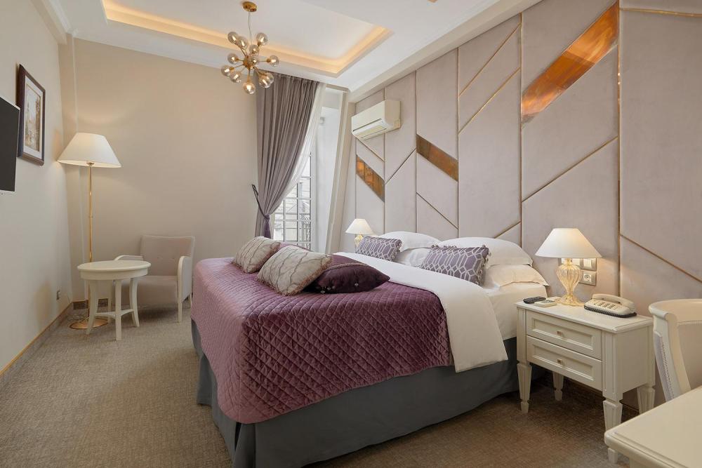 Просторные уютные номера, площадью от 21 кв.м, с широкой двуспальной кроватью/двумя раздельными, выполнены в классическом стиле. Номера оснащены всем необходимым для комфортного пребывания гостей в полном соответствии с международными стандартами гостеприимства. Вид из окна: во внутренний дворик отеля, в город. Оборудование номера: • Двуспальная кровать/две раздельные, письменный стол, журнальный столик, стулья, гардероб • Кондиционер • Плазменная панель, бесплатное беспроводное подключение к интернету (WIFI) • Минибар, сейф • Туалетные принадлежности, фен, халат, тапочки • Ванная комната с ванной • Вид из окна: во внутренний дворик отеля, в город.