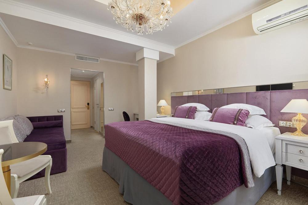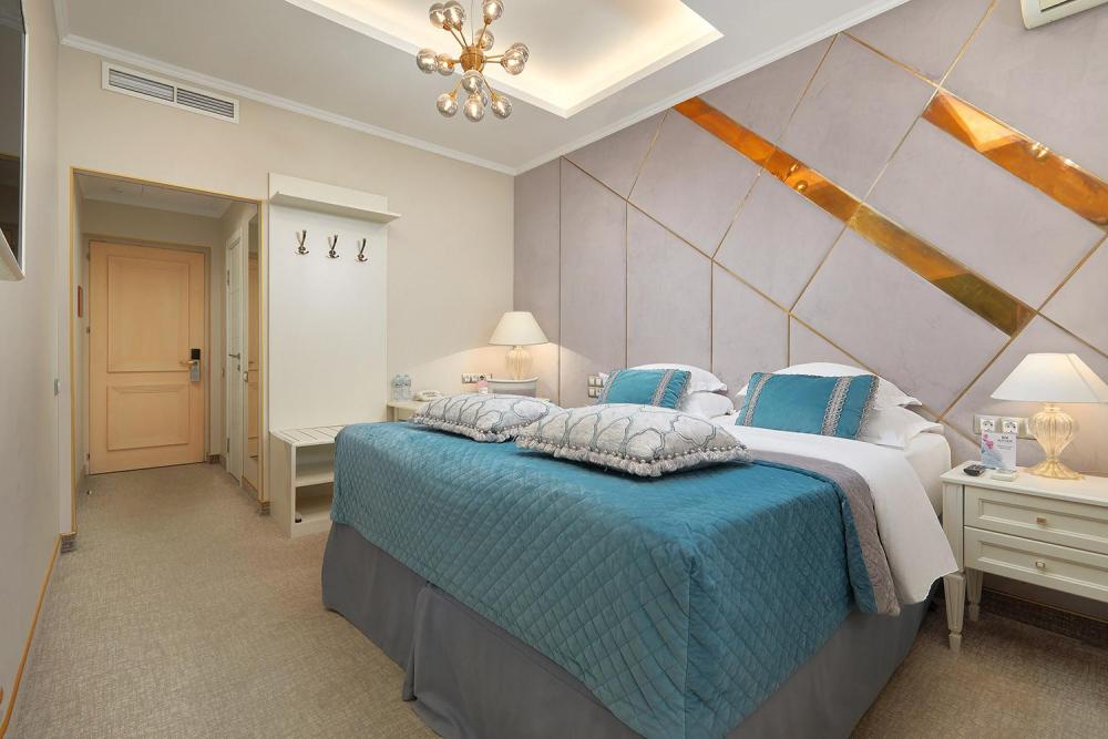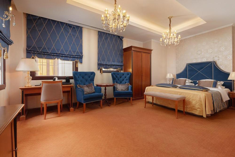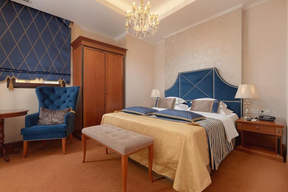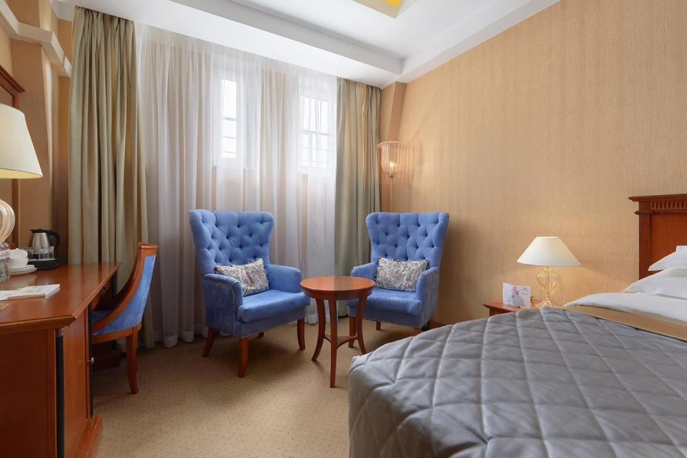 Просторные уютные номера, площадью от 21 кв.м., с широкой двуспальной кроватью, выполнены в классическом стиле. Номера оснащены всем необходимым для комфортного пребывания гостей в полном соответствии с международными стандартами гостеприимства. Вид из окна: во внутренний дворик отеля, в атриум отеля. Часть номеров оснащены мансардными окнами. Часть номеров расположена на втором этаже (подъем/спуск по лестнице). Оборудование номера: • Двуспальная кровать или 2 раздельные, письменный стол, журнальный столик, стулья, гардероб • Кондиционер • Плазменная панель, бесплатное беспроводное подключение к интернету (WIFI) • Минибар, сейф • Туалетные принадлежности, фен, халат, тапочки • Ванная комната с ванной • Вид из окна: во внутренний дворик отеля, в атриум отеля • Часть номеров оснащены мансардными окнами • Некоторые номера расположены на втором этаже (подъем/спуск по лестнице).
