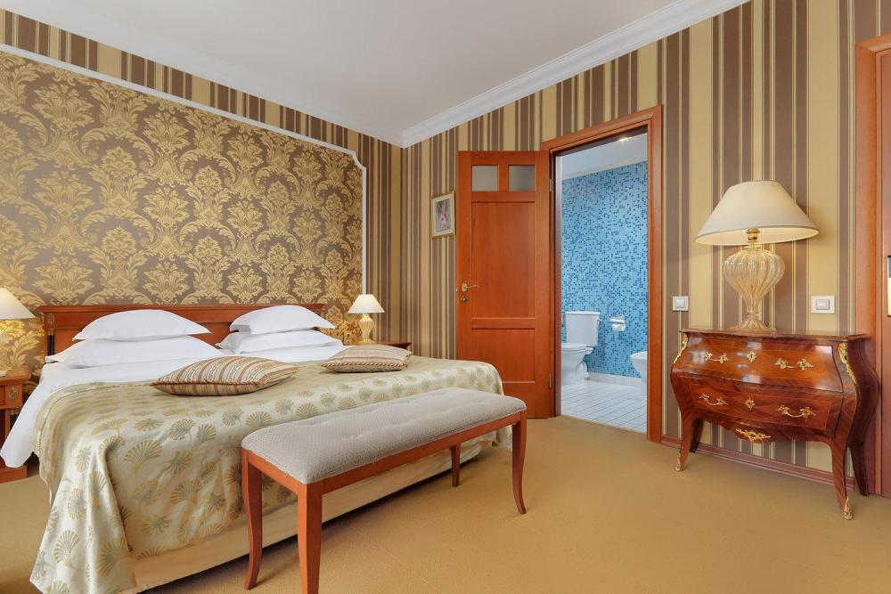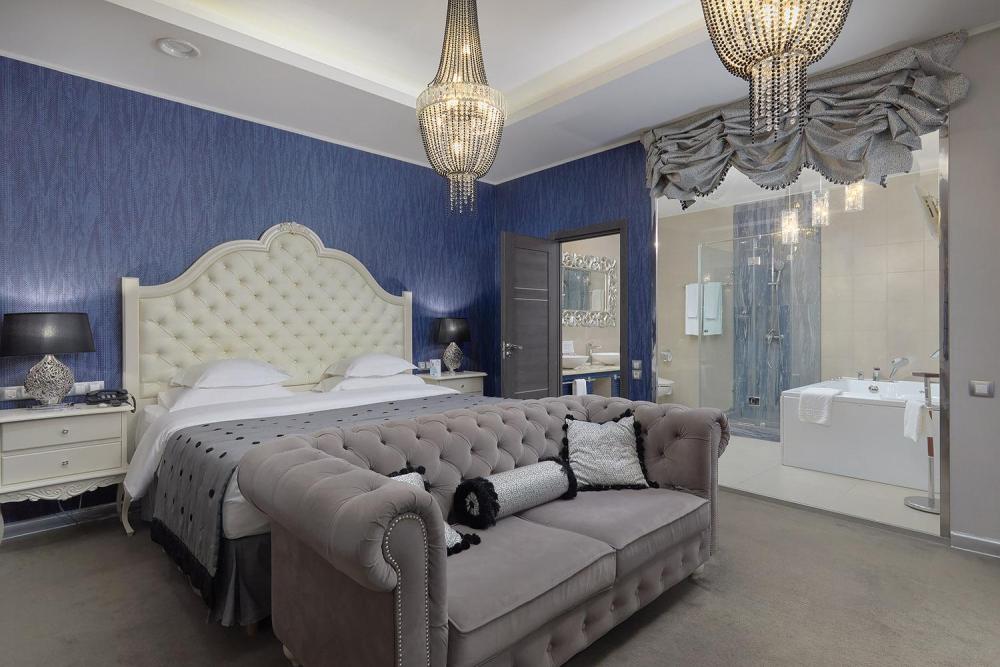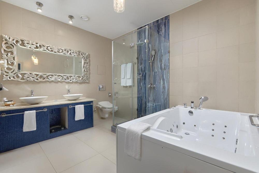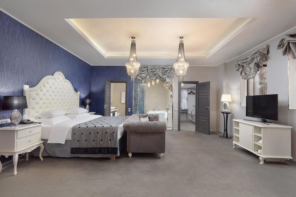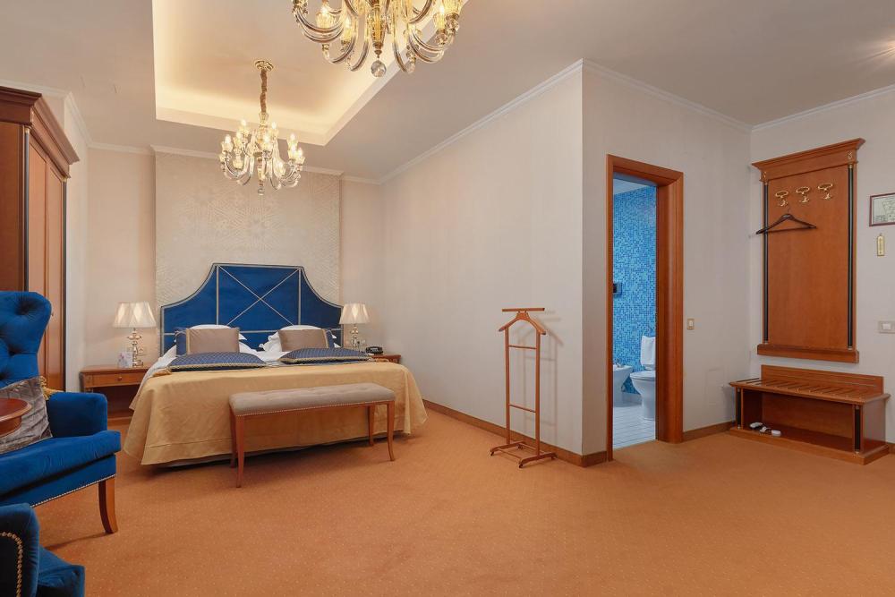 Просторный уютный номер, площадью 53 кв.м, с широкой двуспальной кроватью, выполнен в классическом стиле. Вид из окна: в атриум отеля Номер расположен на втором этаже (подъем/спуск по лестнице). Оборудование номера: Двуспальная кровать Оборудованная рабочая зона (письменный стол, журнальный столик, стулья) Гардеробная комната Будуар Кондиционер Телевидение WI-FI Минибар Сейф Туалетные принадлежности, фен, халат, тапочки Просторная ванная комната с джакузи и душевой Вид из окна: в атриум отеля Номер расположен на втором этаже (подъем/спуск по лестнице).