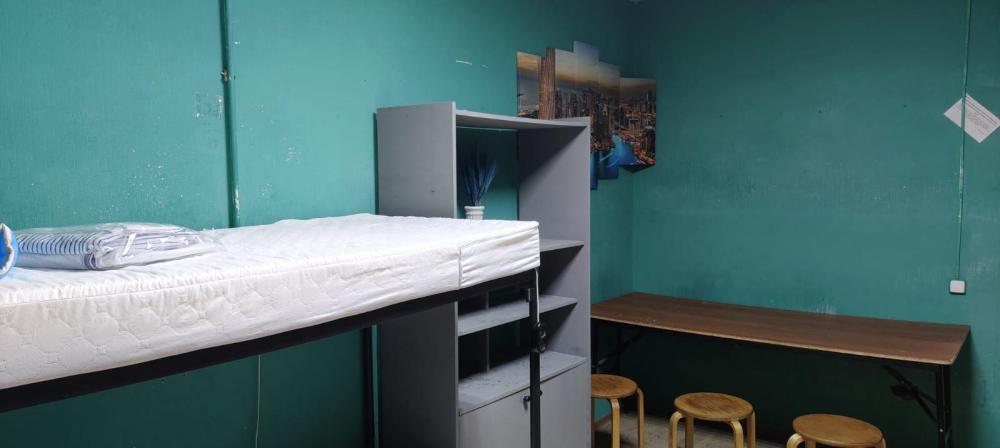 6-ти местный мужской номер, площадью 24 кв. метра. В номере 3 двухъярусных кровати. Стоимость указана за койко-место. В стоимость входит: койко-место, комплект постельного белья, посещение общего санузла, душа, зоны кухни и комнаты со стиральными машинами.