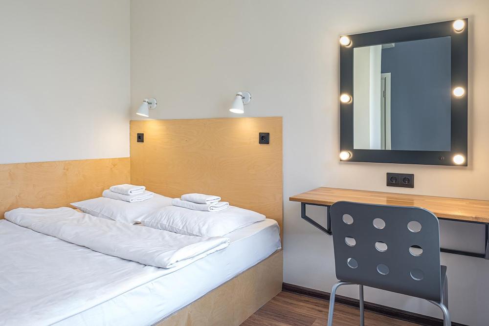 В номере: две двухъярусные кровати, локеры для личных вещей, индивидуальные лампы, розетки, зеркало. Номер сдается по местам. Удобства (душ, туалет) находятся на этаже.