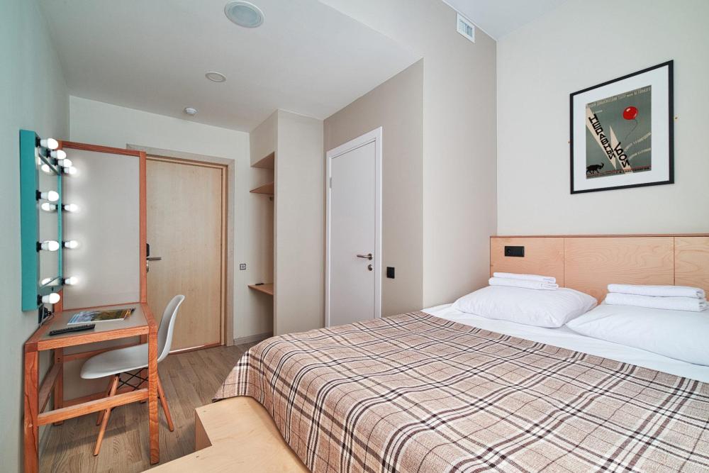 Отдельный номер, площадью от 12 кв. м., оборудованный кондиционером воздуха. В номере: двуспальная кровать и односпальный не раскладывающийся диван, стол, стул, гардеробная секция, зеркало, ТВ, прикроватная тумбочка, мини-холодильник, кондиционер. Удобства (душ, туалет) находятся в номере. ВНИМАНИЕ! Все номера этой категории находятся на последнем этаже здания и имеют только небольшое окно в потолке.