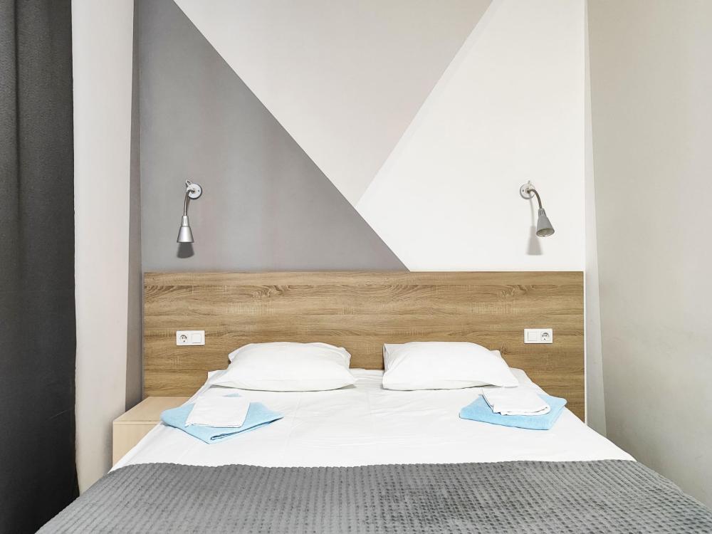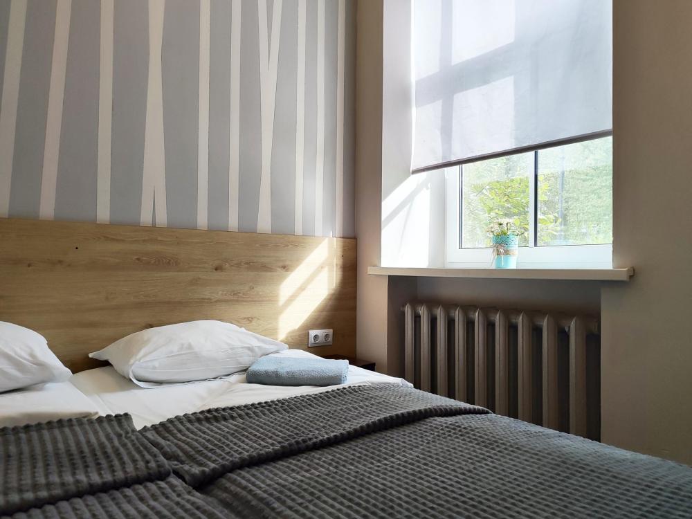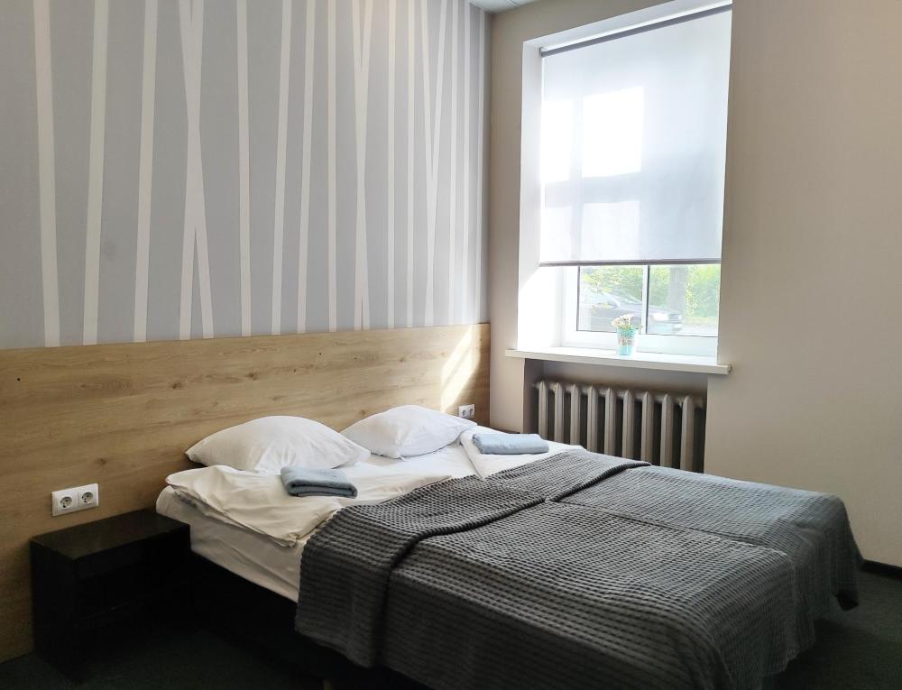 Просторные, светлые номера оснащенные всем необходимым для комфортного проживания: удобными кроватями, прикроватными тумбочками, столом, шкафом и другой мебелью. Площадь номеров данной категории от 16 до 20 кв.м. Оснащение номера • WiFi • Санузел с душем • Телевизор • Туалетные принадлежности • Тапочки
