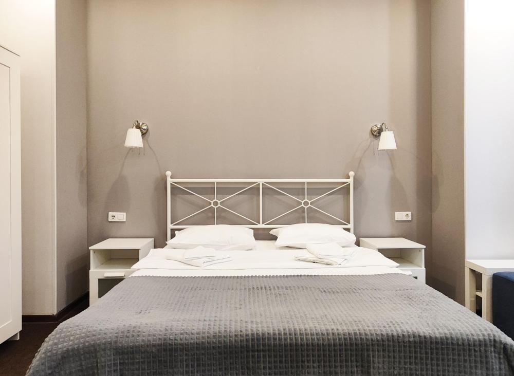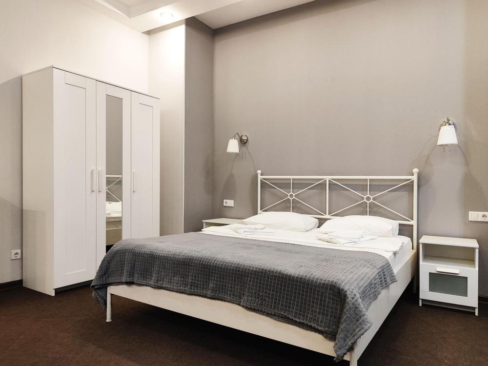Просторные,светлые номера оснащенные всем необходимым для комфортного проживания: удобными кроватями, прикроватными тумбочками, диваном, столом, шкафом и другой мебелью. Площадь номеров данной категории около 20 кв.м. Оснащение номера • WiFi • Санузел с душем или ванной • Телевизор • Телефон • Туалетные принадлежности • Фен • Тапочки