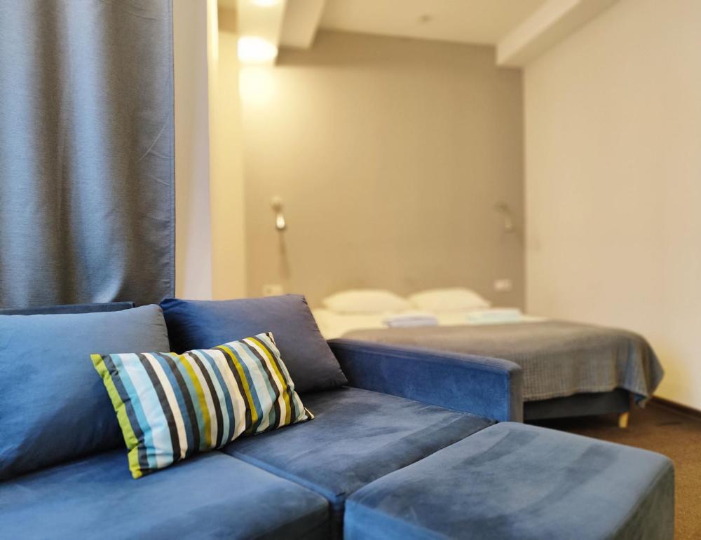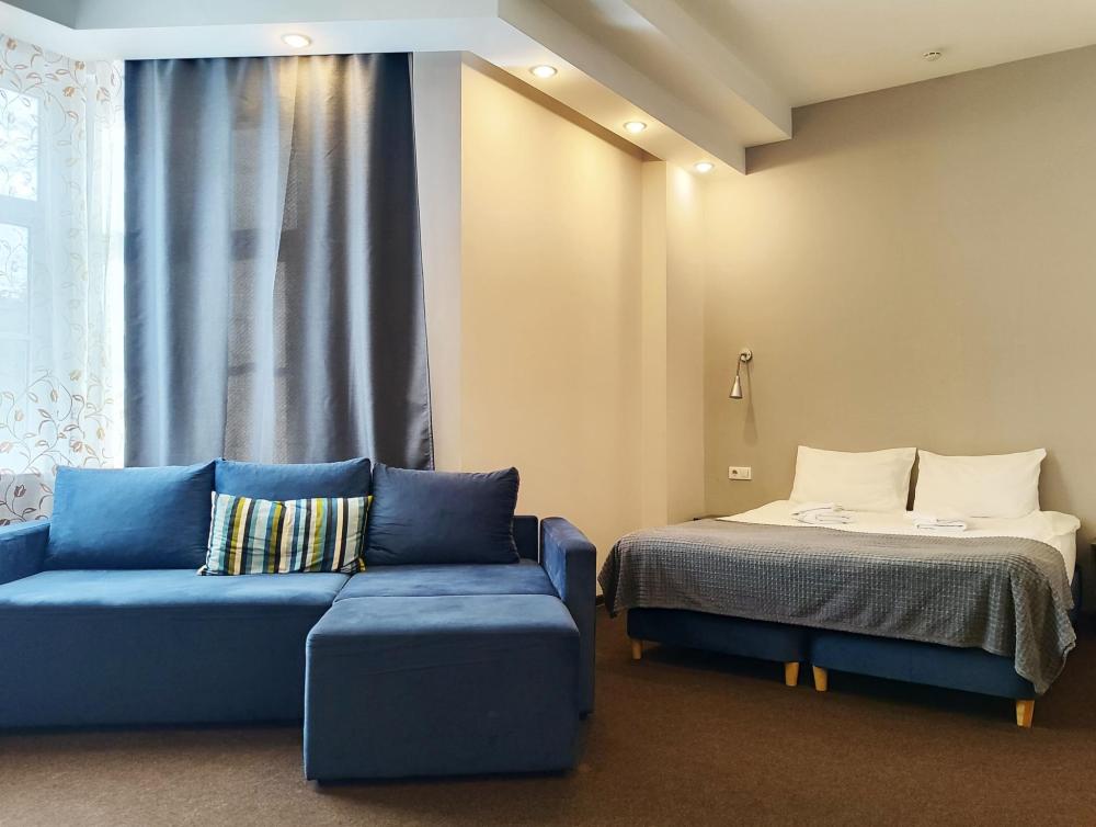 Просторный номер повышенной комфортности, в котором помимо основного оснащения присутствует гостиная зона с диваном, который может быть использован как дополнительное спальное место. Идеален для семейного размещения. Площадь номеров данной категории от 20 до 24 кв.м. Оснащение номера • WiFi • Санузел с душем или ванной • Телевизор • Туалетные принадлежности • Тапочки • Диван