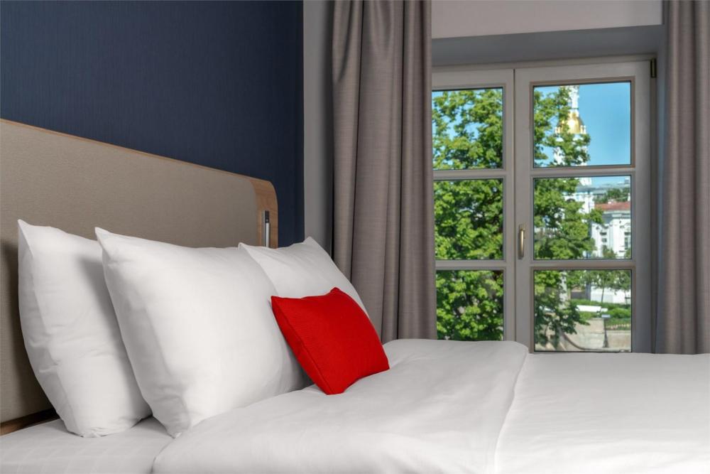 Из окон номеров открывается живописный вид на зеленый сквер Садовой улицы, купола Никольского собора и историческую застройку старой Коломны, а также на перспективу уходящего вдаль канала Грибоедова. Просторный номер, средняя площадь 23-34 кв.м., с двумя раздельными кроватями и бесплатным доступом в Интернет.Мини-бар, набор для приготовления чая и кофе, утюг доступны в каждом номере. Почувствуйте комфорт с индивидуальной системой кондиционирования.