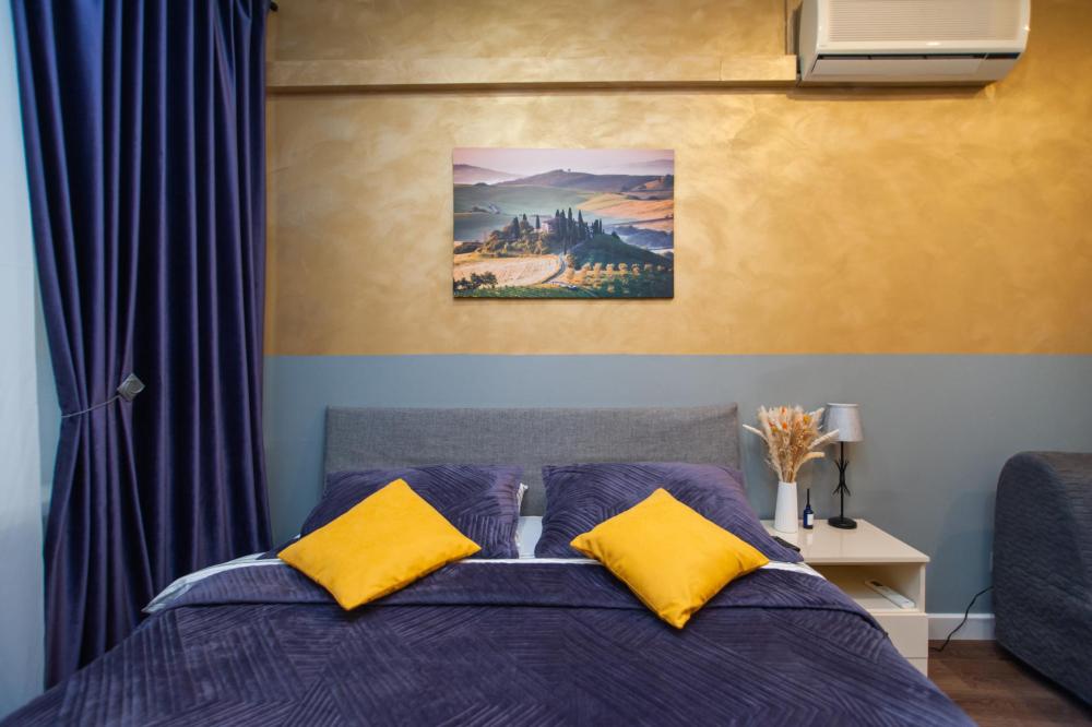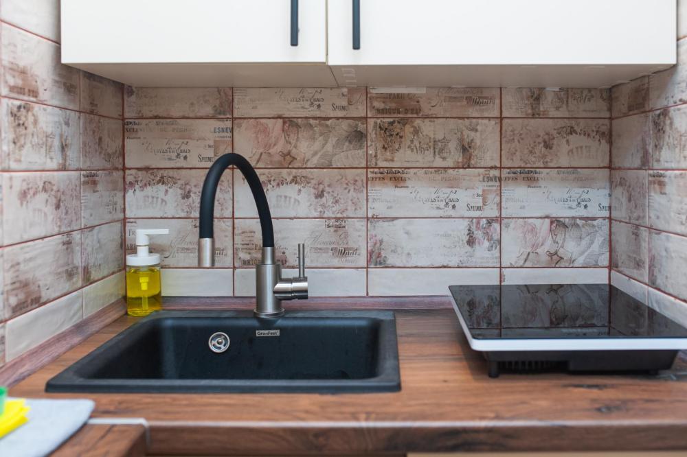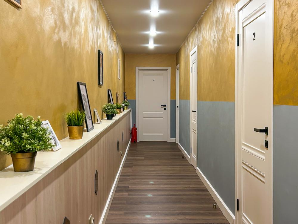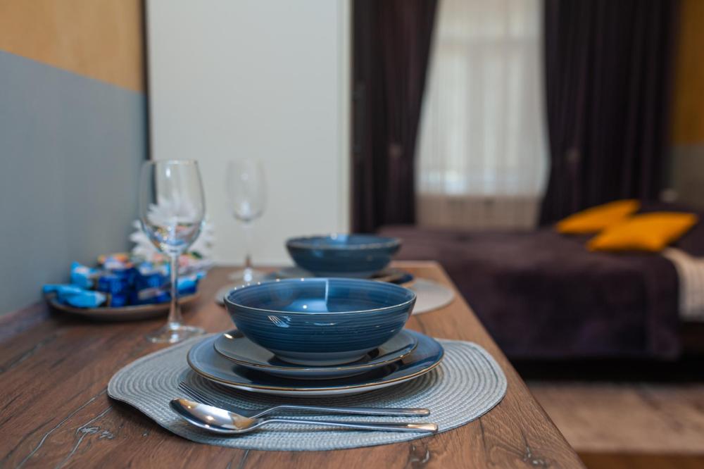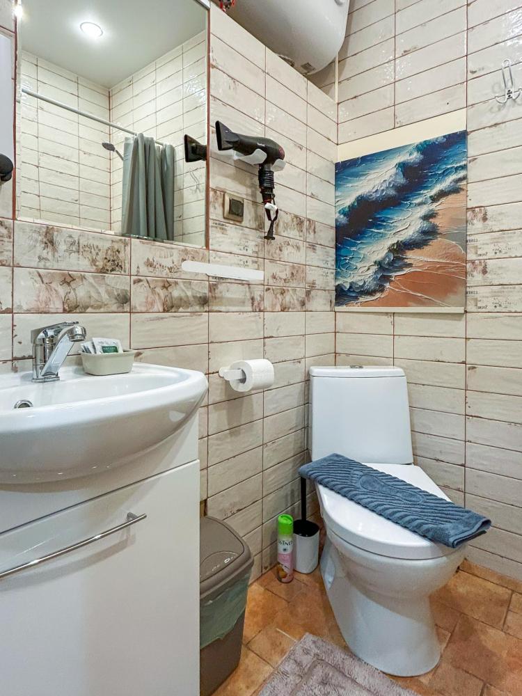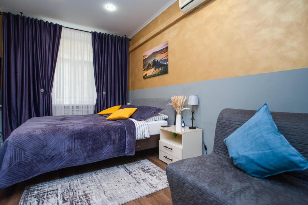 Номер общей площадью 16 м2 с кухней и двуспальной кроватью. Окна выходят в тихий двор. Оснащение: прикроватный столик, телевизор (кабельное ТВ), холодильник, чайный набор, шкаф для одежды. Собственный туалет и душ в номере. В ванной комнате есть фен. Предоставляется комплект постельного белья, комплект полотенец на каждого гостя, косметические принадлежности, тапочки. В общей зоне: кулер с водой, микроволновая печь, стиральная машина, посудный шкаф, утюг и гладильная доска. На всей территории отеля работает бесплатный Wi-Fi.