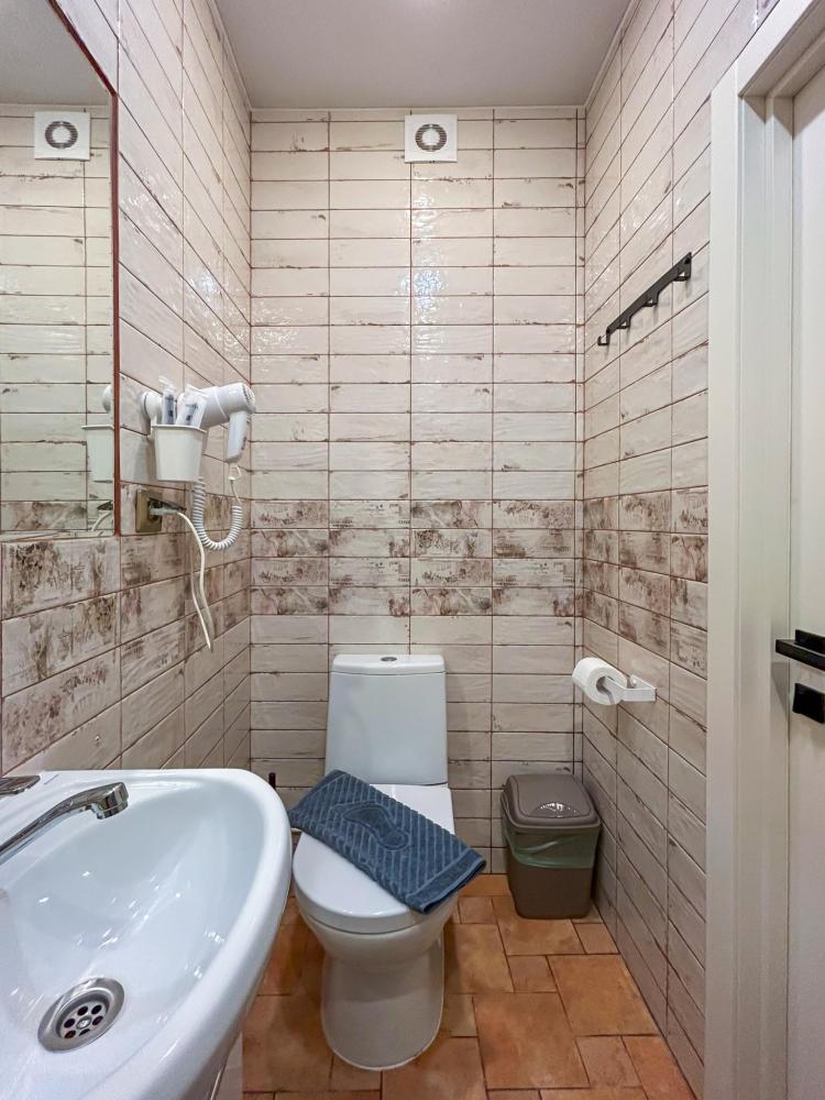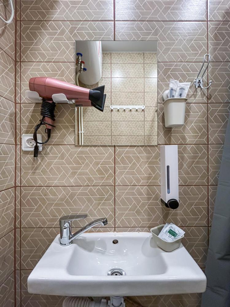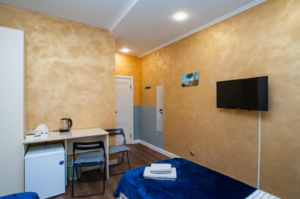 Номер общей площадью 13 м2 с двуспальной кроватью. Окно выходит в тихий двор. Оснащение: кондиционер, прикроватный столик, телевизор (кабельное ТВ), журнальный стол, чайный набор, место для хранения вещей. Предоставляется комплект постельного белья, комплект полотенец на каждого гостя, косметические принадлежности, тапочки. В общей зоне: кулер с водой, холодильник, микроволновая печь, посудный шкаф, утюг и гладильная доска. Собственная ванная комната в номере. В ванной комнате есть фен. На всей территории отеля работает бесплатный Wi-Fi.