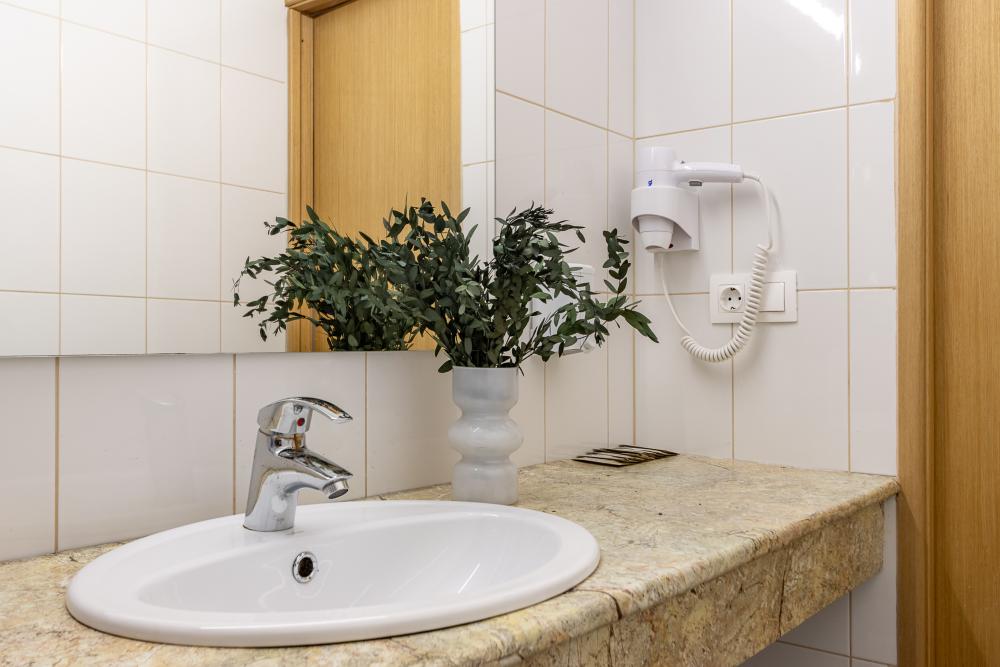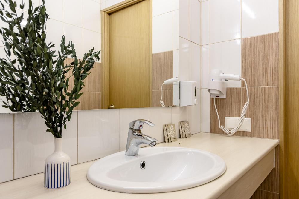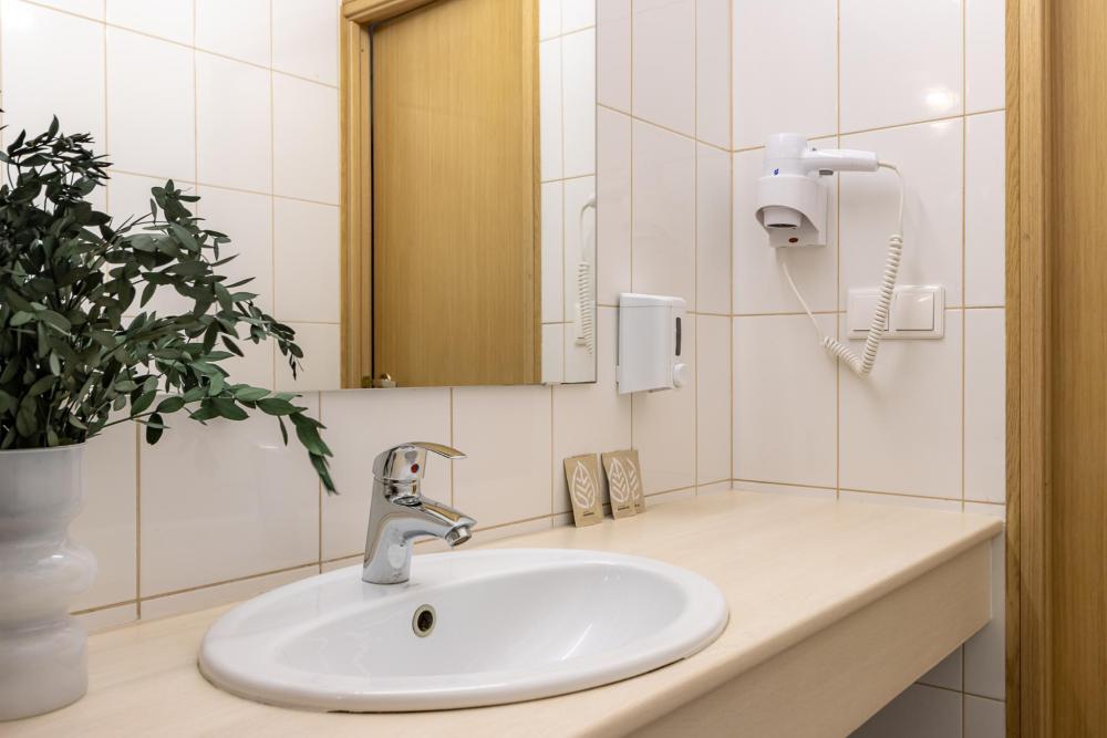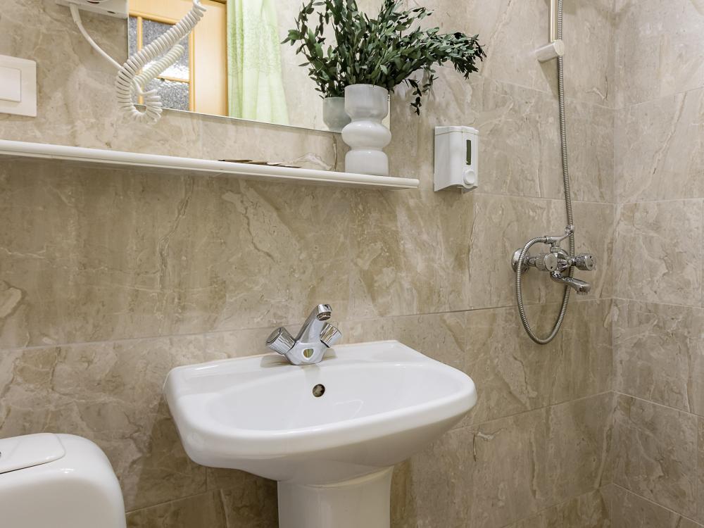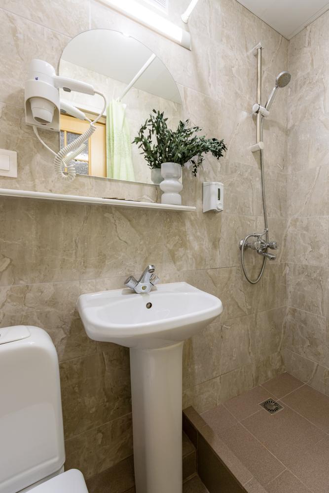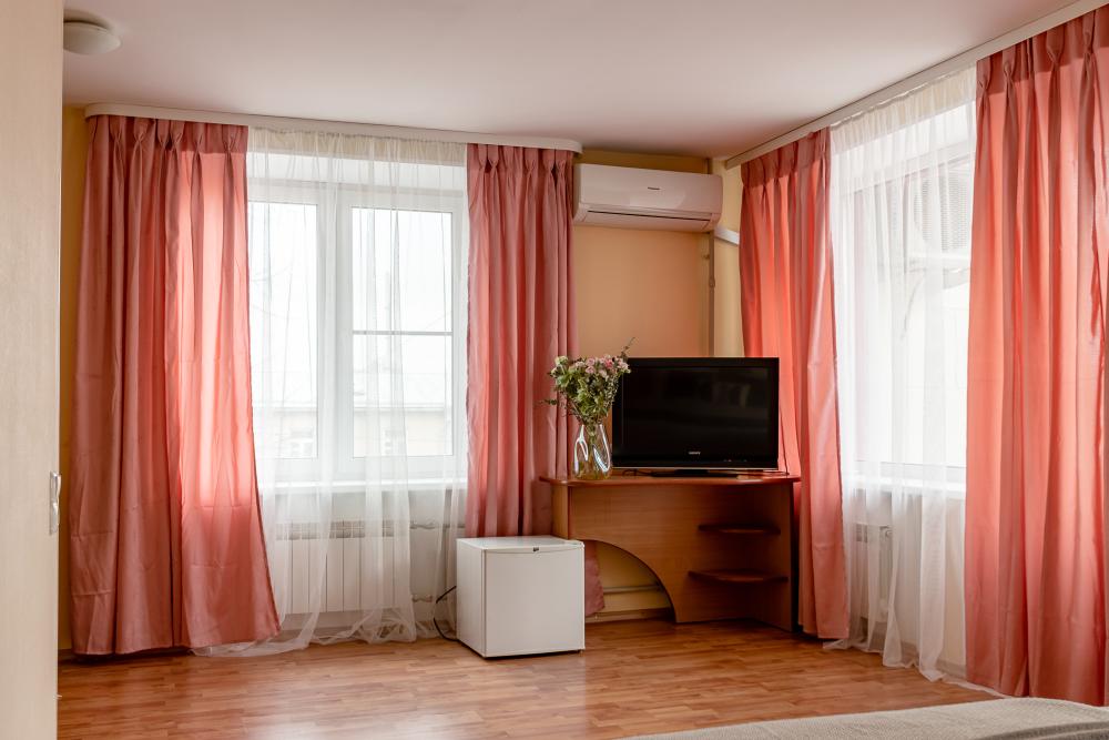 Во всех номерах есть электрочайник, столовый и чайный сервизы, холодильник, вентилятор. В холодное время года можно воспользоваться обогревателем. Мы также позаботились о том, чтобы Вы брали меньше вещей с собой в дорогу- в ванной комнате. Вы всегда можете воспользоваться феном, а также утюгом и гладильной доской. Создать домашнюю атмосферу Вам помогут тапочки.