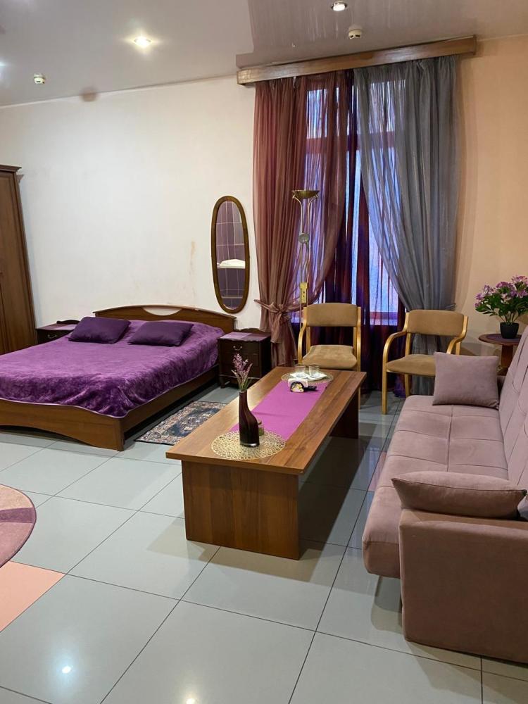 Двухместный номер комфорт с двуспальной кроватью и ванной. В номере ванная (халат, полотенца, тапочки, гигиенические принадлежности), раздельный санузел. Также диван, кресло, кофейный столик, шкаф для одежды и комод.