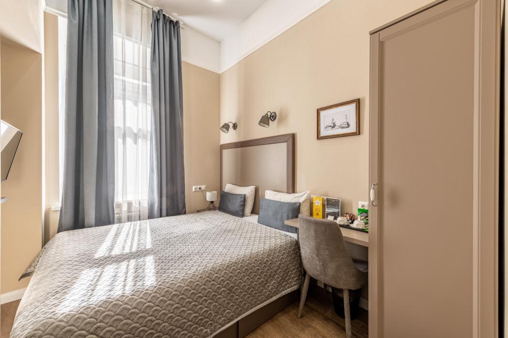 Комфортный номер с одной двуспальной или двумя односпальными кроватями. Оборудован мини-кухней. Имеются номера с видом на Невский проспект и на тихий двор. К услугам гостей бесплатные косметические принадлежности, банные халаты, тапочки, wi-fi, чай, кофе, кулер.