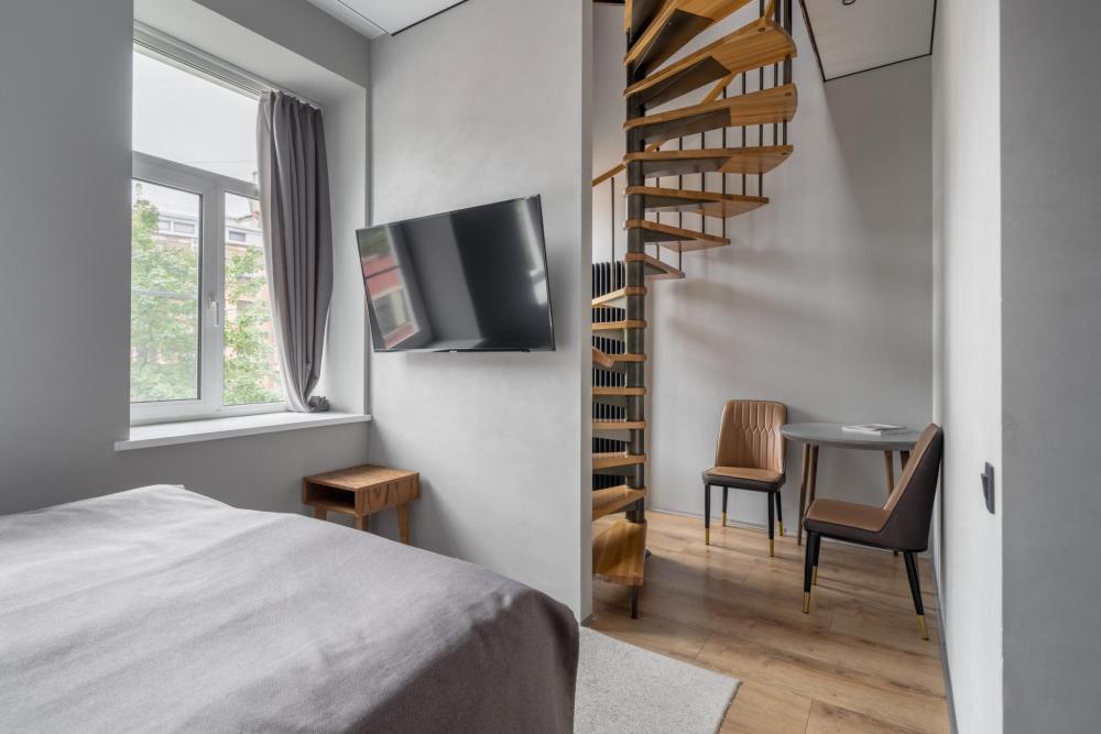 Окунитесь в атмосферу романтики и уюта в нашем эксклюзивном номере “Полулюкс-мансардный”! Расположенный на верхнем этаже отеля, этот номер отличается неповторимым шармом благодаря скошенным потолкам, окнам в крыше и просторному, свету наполненному пространству. Особенности: •Просторный номер, оформленный в уникальном мансардном стиле. •Телевизор со смарт-ТВ с широкой диагональю •Обеденная зона (стол со стульями)