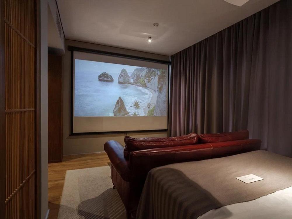 Наш номер категории “Полулюкс-кинотеатр” создан для настоящих киноманов и тех, кто ценит незабываемые впечатления. Насладитесь просмотром любимых фильмов и сериалов на большом экране, создав атмосферу настоящего кинотеатра прямо у себя в номере. Особенности: •Мягкая мебель в виде уютного дивана •Проектор со смарт-ТВ •Рабочее место (письменный стол)