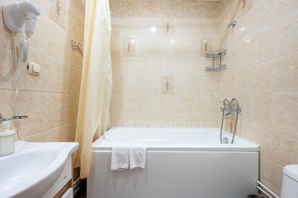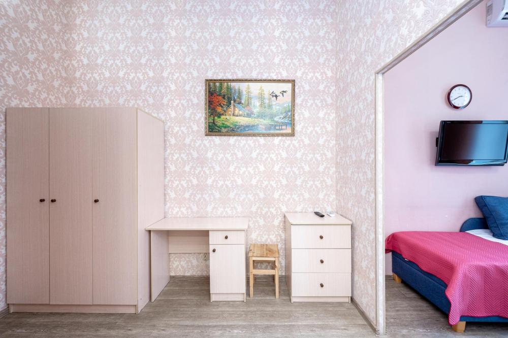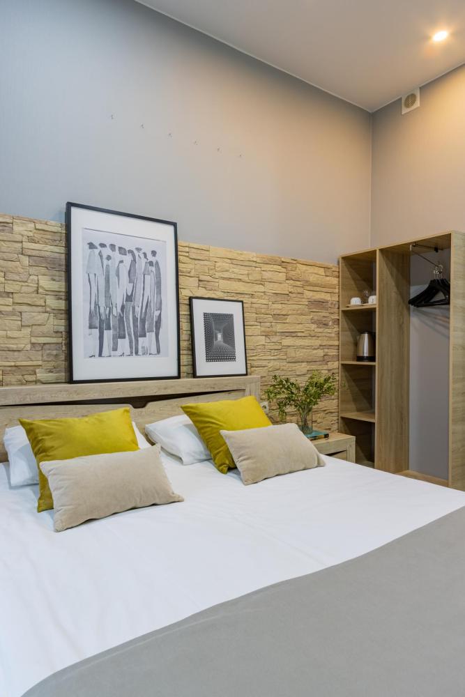 Добро пожаловать в наш стильный и уютный номер, идеально подходящий для комфортного проживания вдвоем. Оформленный в современном стиле и теплых тонах, он предлагает максимальное удобство для наших гостей. В вашем распоряжении — полуторные кровати с ортопедическими матрасами и гипоаллергенным постельным бельем, что обеспечит вам здоровый и спокойный сон. Номер оснащен обеденным столом и стульями, холодильником, микроволновой печью и электрочайником, создавая все условия для вашего удобства. В ванной комнате расположена душевая кабина с гидромассажем, а также умывальник с зеркалом и феном. Мы предоставляем набор гигиенических принадлежностей и полотенец, чтобы ваше пребывание было еще более комфортным. Также вашем распоряжении гардероб и ЖК телевизор размером 32 дюйма с 60 каналами. Бесплатный доступ к высокоскоростному интернету Wi-Fi позволит вам оставаться на связи. Наслаждайтесь отдыхом в нашем номере, где каждый элемент продуман для вашего максимального удобства и уюта!