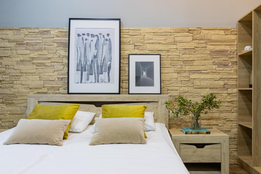 Номера от S - 25 кв. метров, представляют собой квартиру-студио, оформлены номера каждый по отдельному дизайну. Высота потолка 4 метра, светлые номера Имеют разграничения спальни с двуспальной кроватью и гостиной с кухней, позволяющей готовить легкую еду. Номера оборудованы; спальным гарнитуром, кухонным уголком и кухонным гарнитуром с необходимой кухонной посудой, холодильником, микроволновой печью, чайником, сейфом, ЖК телевизором 60 каналами. Кресло/диван-кровать для возможности размещения третьей персоны. Ванную комнату с душевой кабиной , уборной и умывальником с зеркалом и феном, и принадлежностями гигиены, набор полотенец, гипоаллергенное постельное белье - Сатин - 100% хлопок,