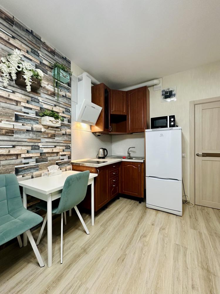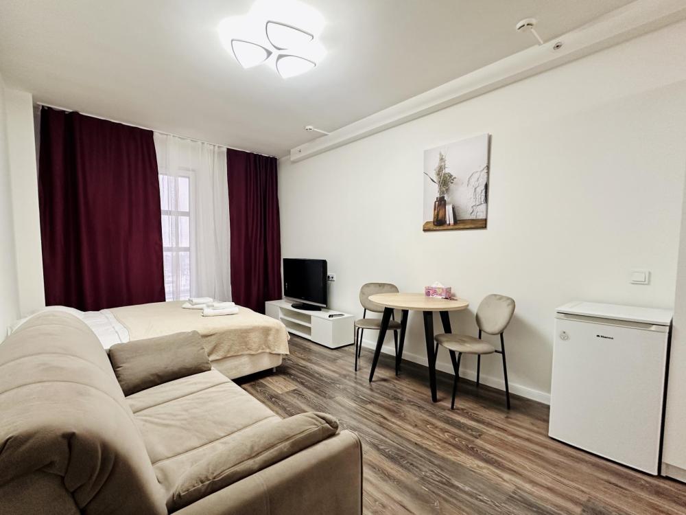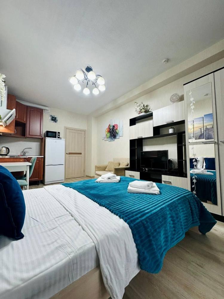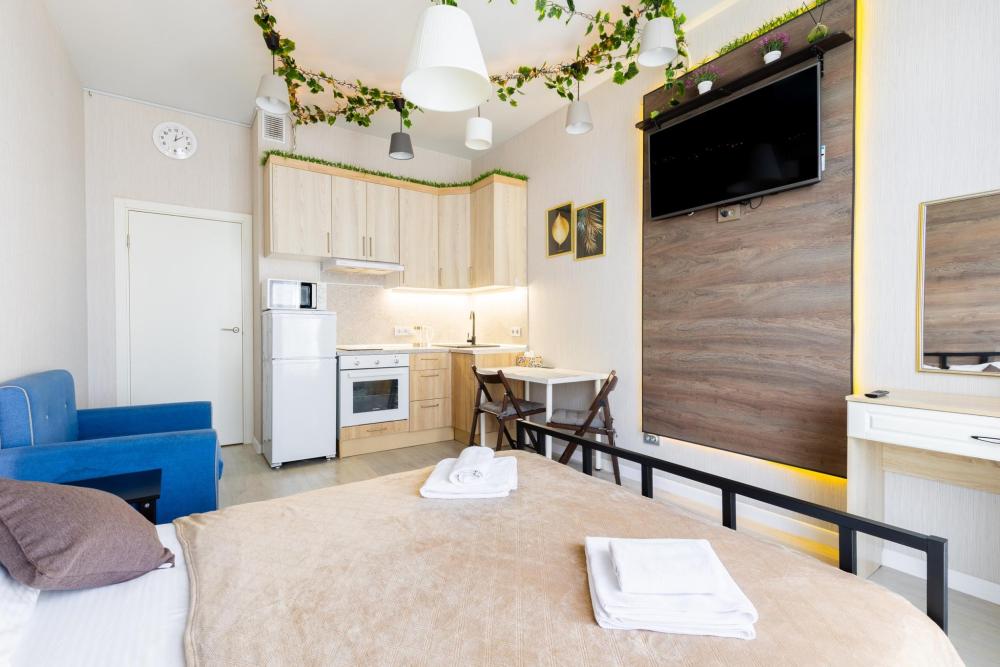 Комфортная студия с двуспальной кроватью. Номер оснащен телевизором, местом для хранения одежды, ванной комнатой, предоставляются туалетно-косметические принадлежности. Все необходимое для комфортного проживания, включая кухонный гарнитур.