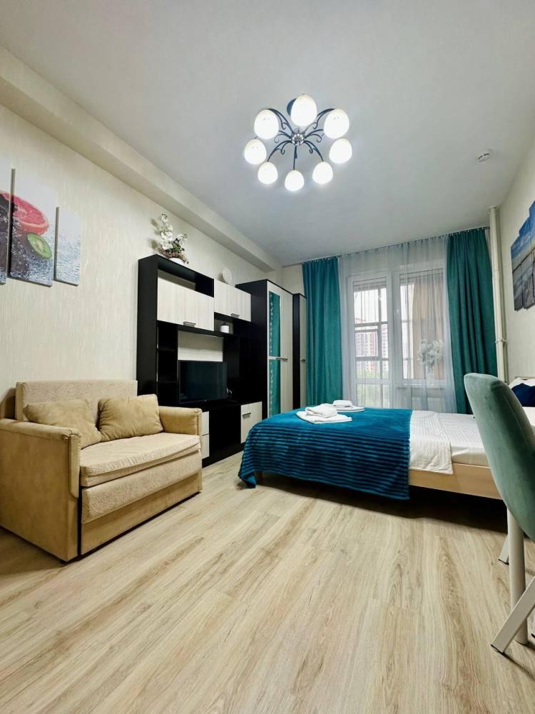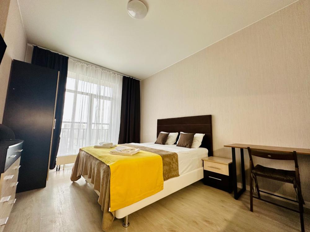 Комфортная студия с двуспальной кроватью и балконом. Номер оснащен балконом, телевизором, местом для хранения одежды, ванной комнатой, предоставляются туалетно-косметические принадлежности. Все необходимое для комфортного проживания, включая кухонный гарнитур.