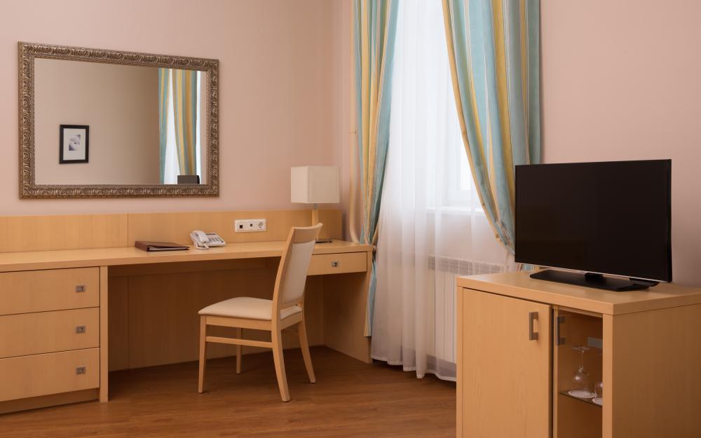 Улучшенный двухместный однокомнатный номер сочетает комфорт и стиль в каждой детали. В номере просторная спальня с удобной кроватью для двухместного размещения и уютная зона для отдыха. Номера расположены на 2 этаже.