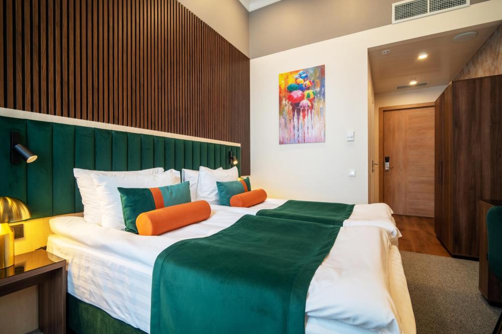 Улучшенный двухместный номер сочетает комфорт и стиль в каждой детали. В номере просторная спальня с удобной кроватью для двухместного размещения и уютная зона для отдыха. Площадь номера: 18-28 кв.м.